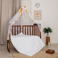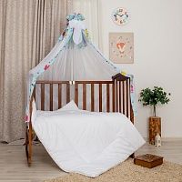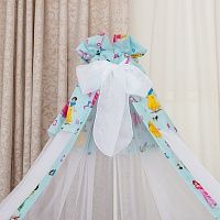 Балдахин для детской кроватки, изделие изготовлено из вуали, с использованием поплина с набивным рисунком, и украшено галстуком из вуали. Размер изделия 300*150 см. Цвет в ассортименте. Изделие упаковано по 1 ед. в индивидуальный пакет. Примечание: Держатель для балдахина не входит в комплект.