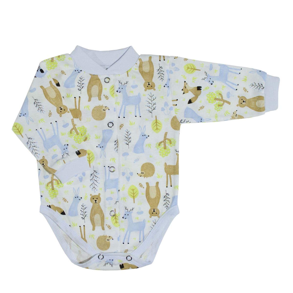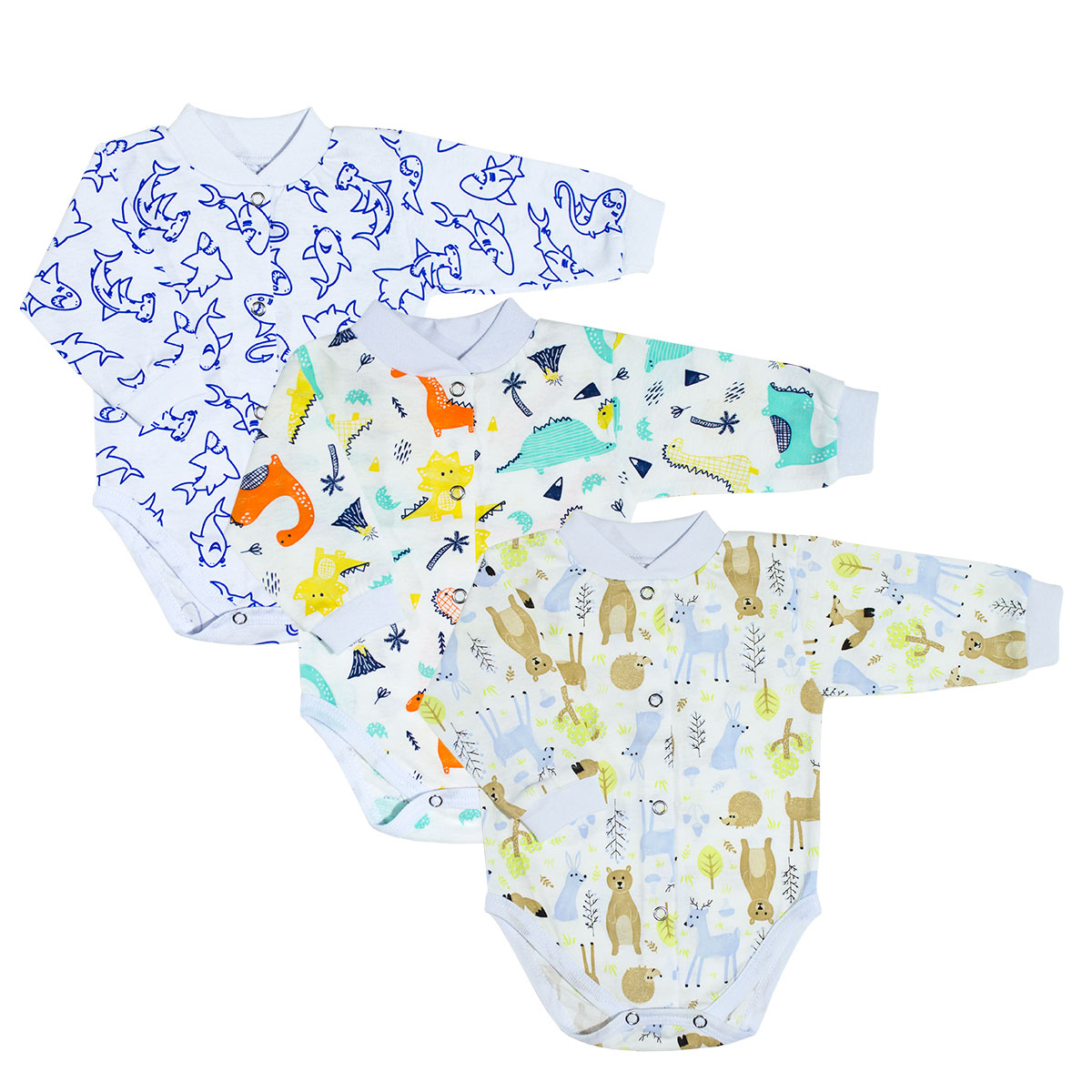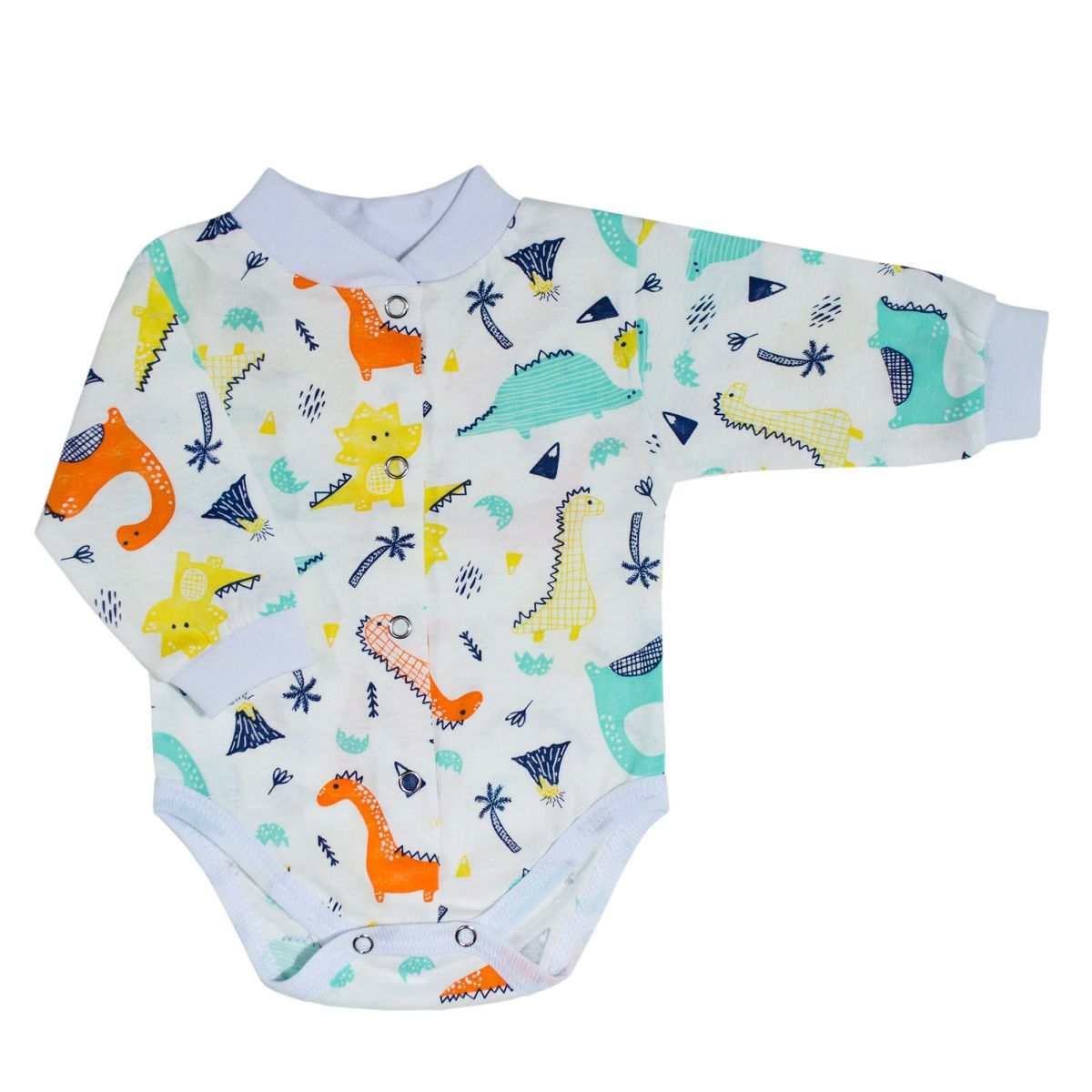 Боди с длинным рукавом, полностью распашное на кнопках, выполнен из легкого трикотажного полотна. Упакован в индивидуальный пакет. Расцветки в ассортименте.