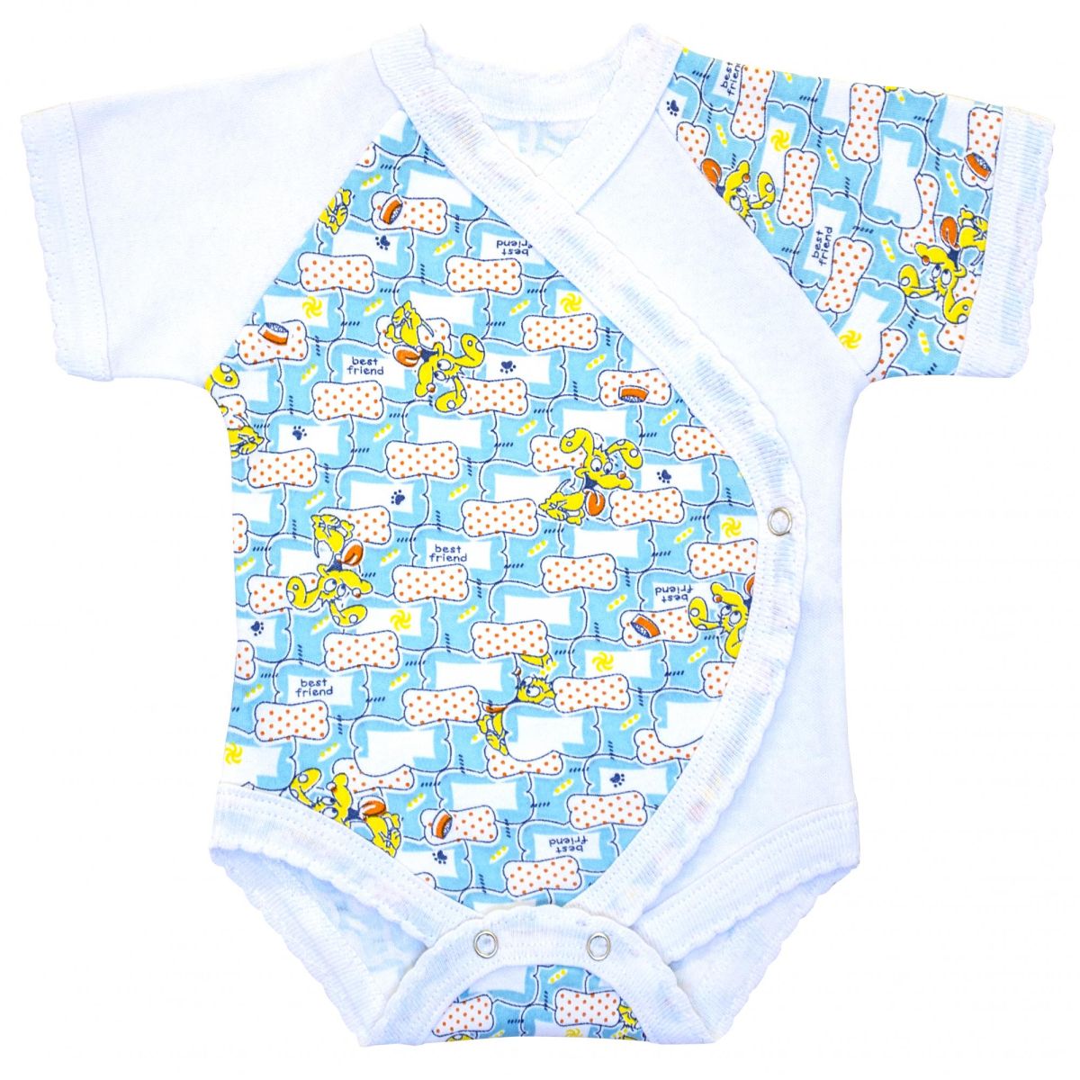 Боди с коротким рукавом полностью распашное на кнопках, выполнено из трикотажного полотна средней плотности. Упакован в индивидуальный пакет. Расцветки в ассортименте.