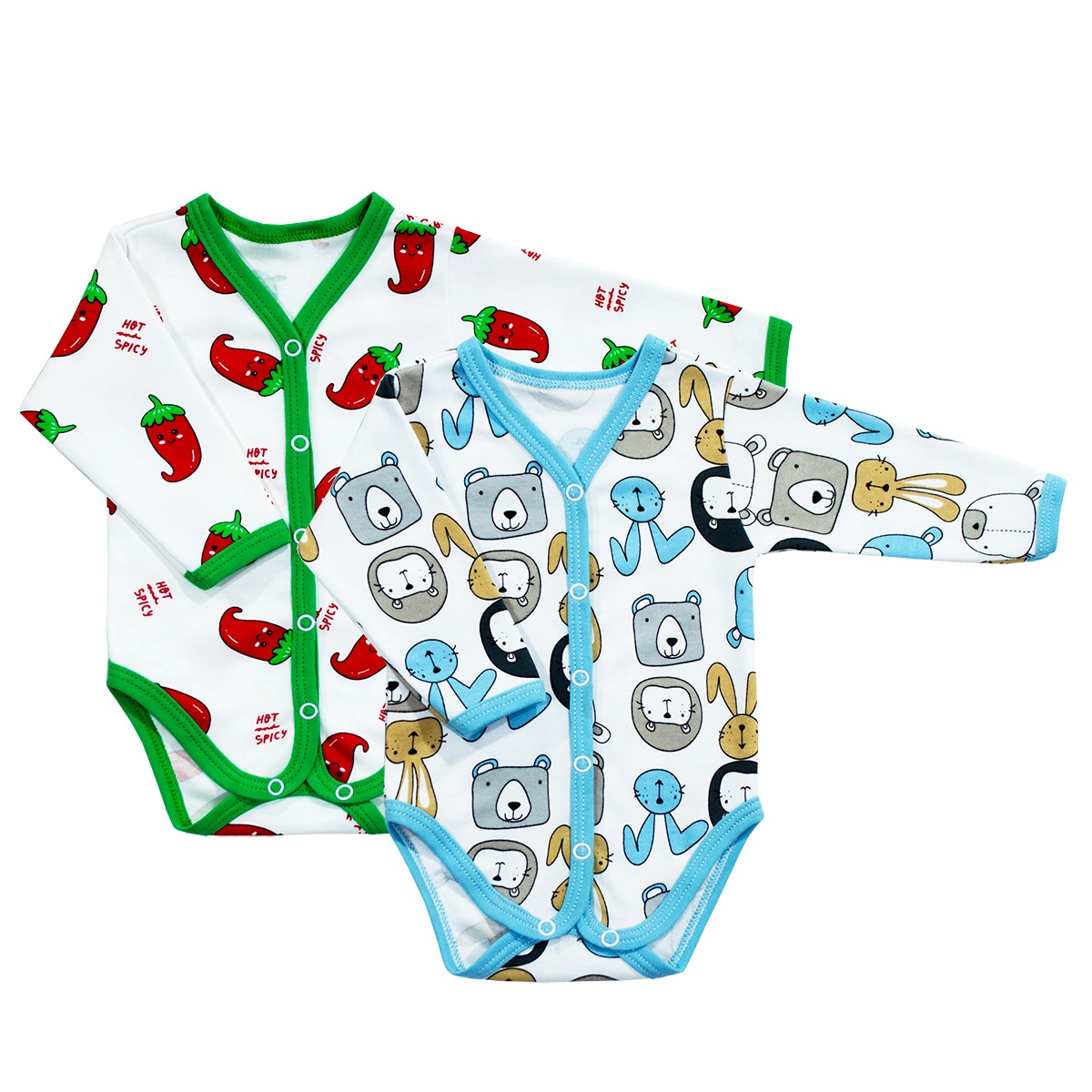 Боди-кофточка с длинным рукавом под окантовку, на кнопках, полностью распашное, выполнено из нежного трикотажного полотна средней плотности. Упакован в индивидуальный пакет. Расцветки в ассортименте.