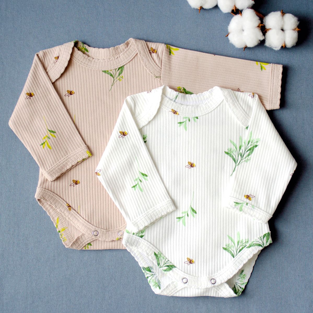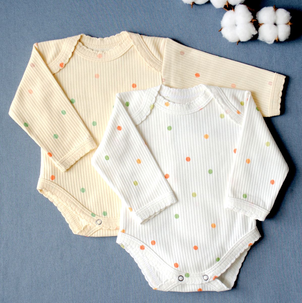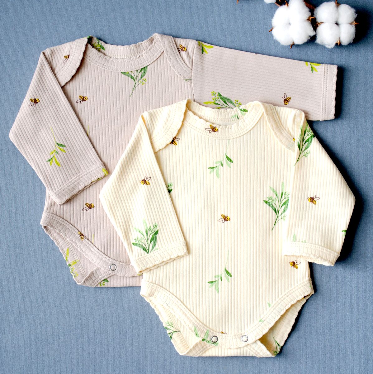 Боди для новорожденного малыша. Модель боди с длинным рукавом, выполнен из трикотажного полотна средней плотности. Состав материала: - Интерлок пенье в рубчик (лапша) Упакованы в индивидуальный пакет. Расцветки в ассортименте.