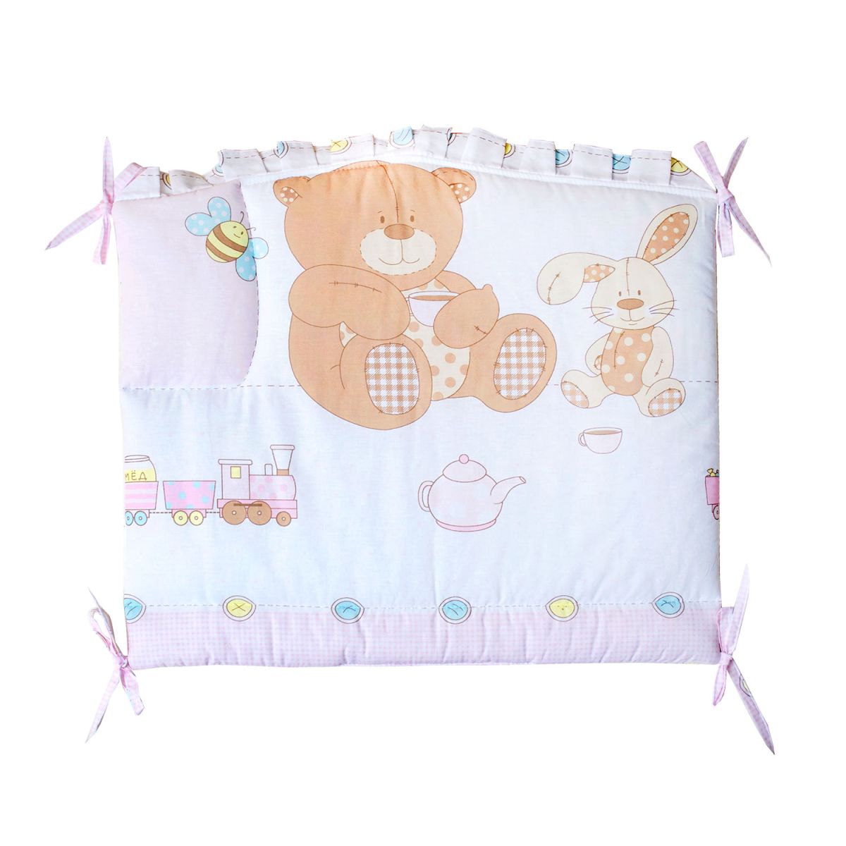 Бортик для детской кроватки высокий, изготовлен из поплина с набивным рисунком, изделие состоит из 4-х деталей. Высота изделия 50 см. Цвет в ассортименте. Изделие упаковано в пакет.