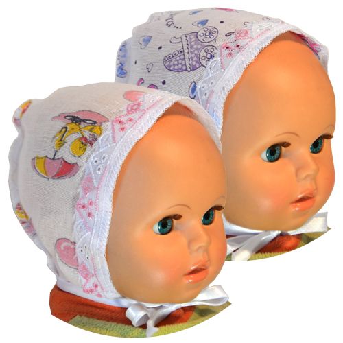 Чепчик для новорожденного украшен по краю кружевом, выполнен из легкого ситца.