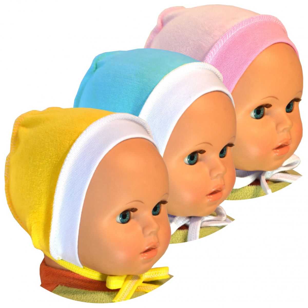 Чепчик для новорожденного на рибане, выполнен из велюрового трикотажного полотна.
