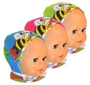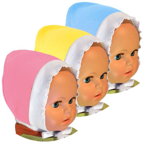 Чепчик для новорожденного на рибане, выполнен из трикотажного полотна средней плотности.