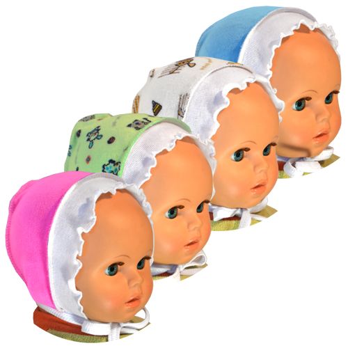Чепчик для новорожденного на рибане, выполнен из велюрового трикотажного полотна.