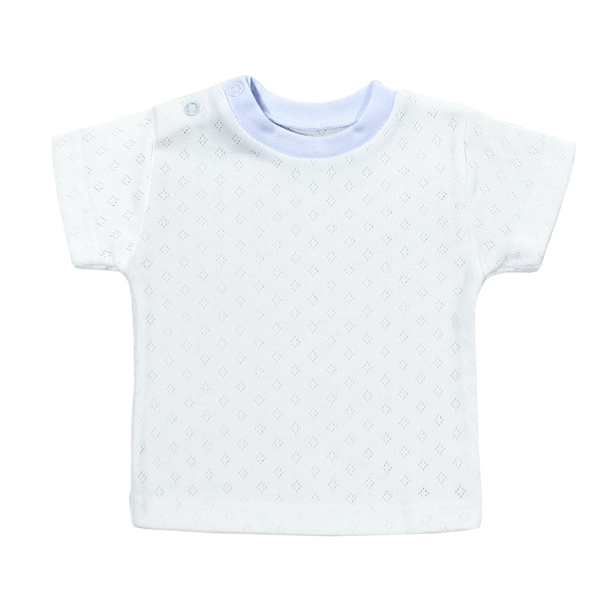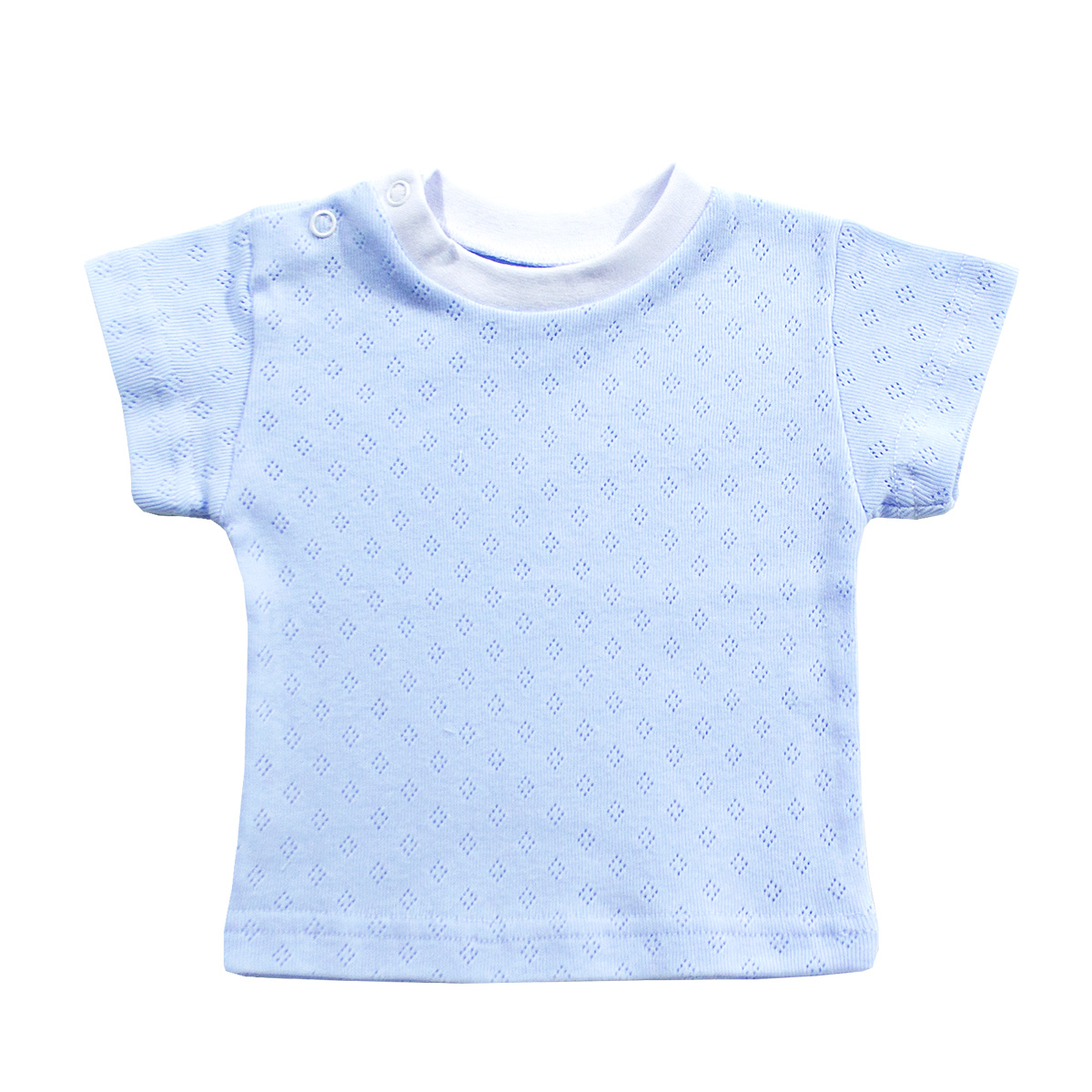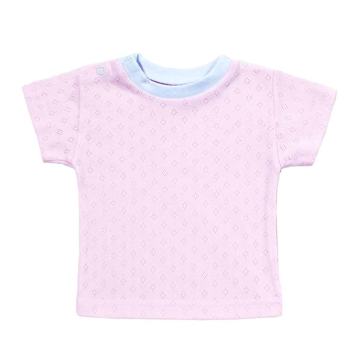 Футболка с коротким рукавом, с одной стороны с кнопками на плече, выполнена из нежного трикотажного ажурного полотна. Расцветки в ассортименте. Упакована по 1 ед. в индивидуальный пакет.