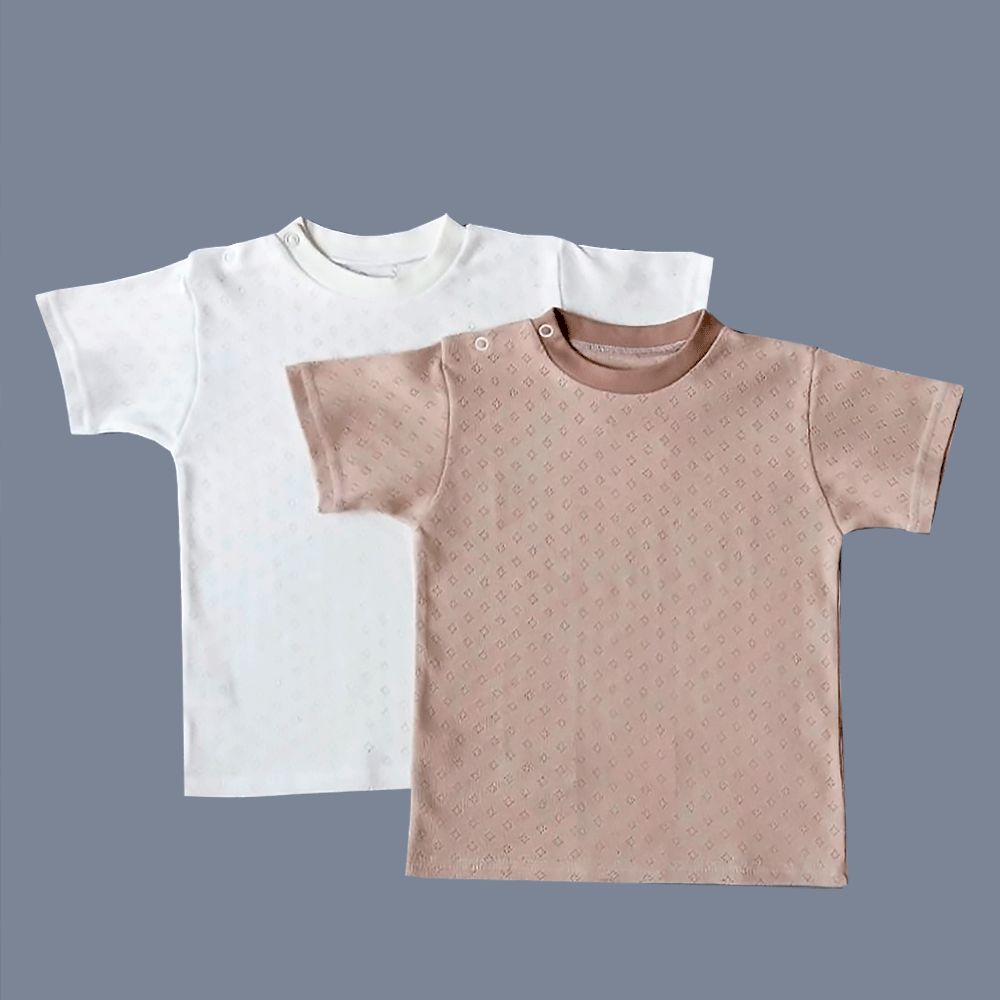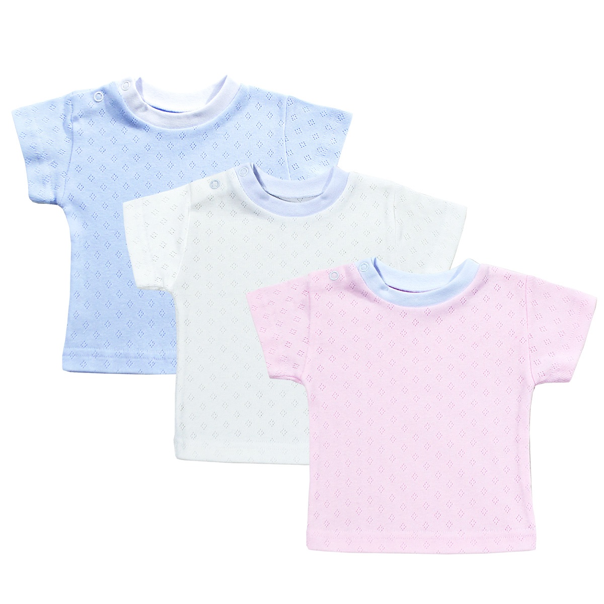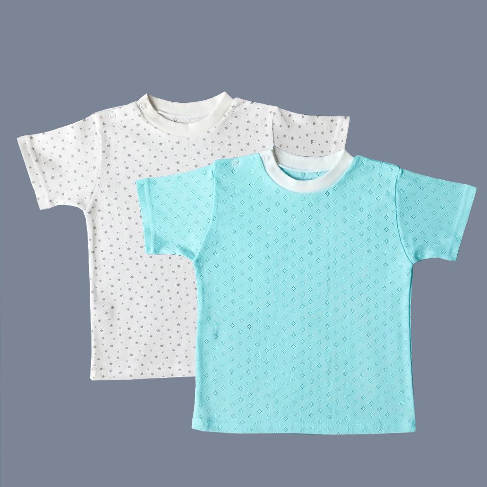 Футболка с коротким рукавом, с одной стороны с кнопками на плече, выполнена из нежного трикотажного ажурного полотна. Расцветки в ассортименте. Упакована по 1 ед. в индивидуальный пакет.