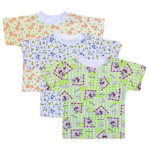Футболка с коротким рукавом, с одной стороны с кнопками на плече, выполнена из трикотажного полотна средней плотности. Расцветки в ассортименте. Упакован по 1 ед. в индивидуальный пакет.
