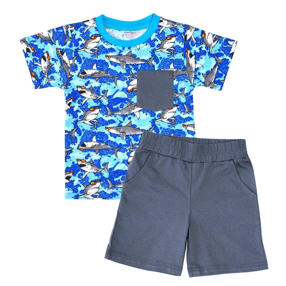 Комплект 2-х предметный для мальчика возрастом от 2 до 7 лет. Выполнен из легкого хлопкового трикотажного полотна. Практичный и недорогой вариант одежды повседневного использования. Идеальный комплект одежды для садика. В комплект входит: - Футболка с накладным карманом на груди - Шорты с карманами (в шве) Расцветки в ассортименте Упакован в индивидуальный пакет.