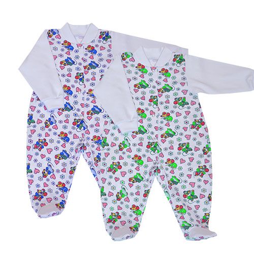 Комбинезон на кнопках, полностью распашной до следика, с ластовицей, со следиком, воротник стойкой, выполнен из трикотажного полотна средней плотности. Упакован по 1 ед. в индивидуальный пакет.