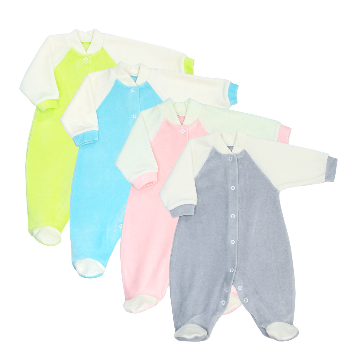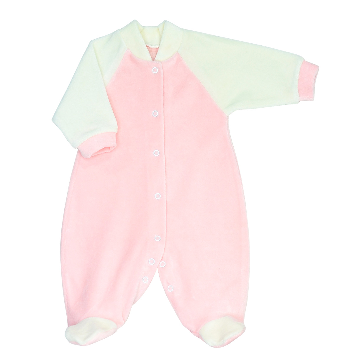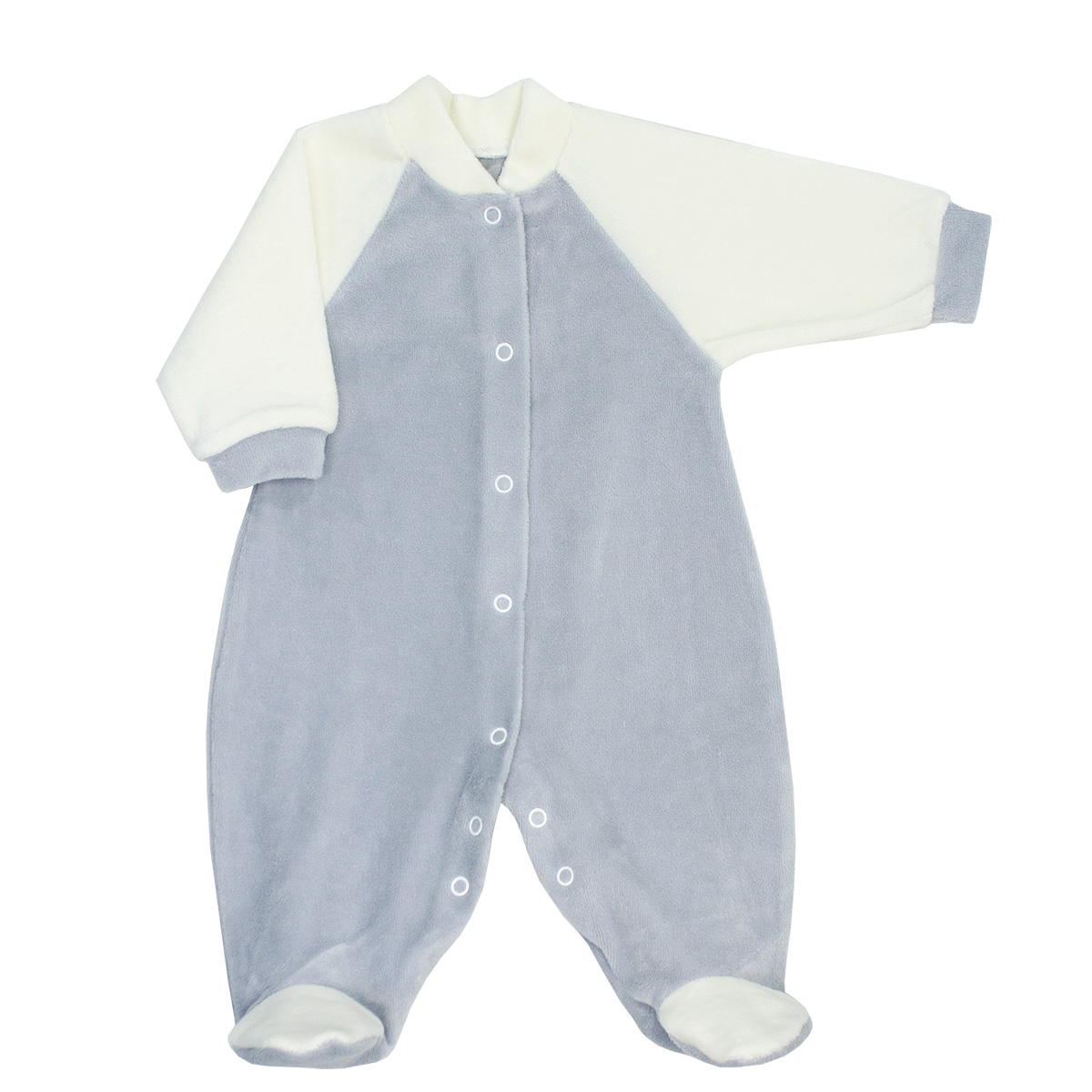 Комбинезон на кнопках, полностью распашной до следика, с ластовицей, со следиком, воротник стойкой, выполнен из нежного велюрового трикотажного полотна. Упакован по 1 ед. в индивидуальный пакет.