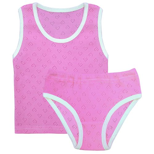 Комплект нижнего белья для девочки, выполнен из нежного трикотажного ажурного полотна. В комплект входит 2 предмета: - майка, - трусы. Упакован в индивидуальный пакет. Цвет в ассортименте.