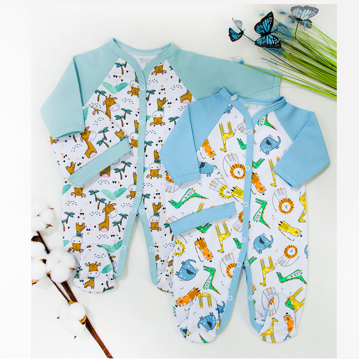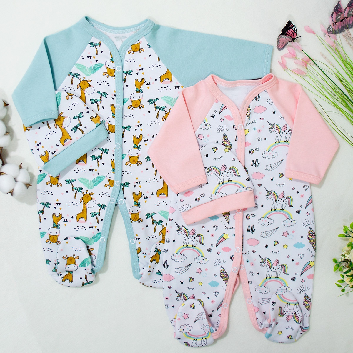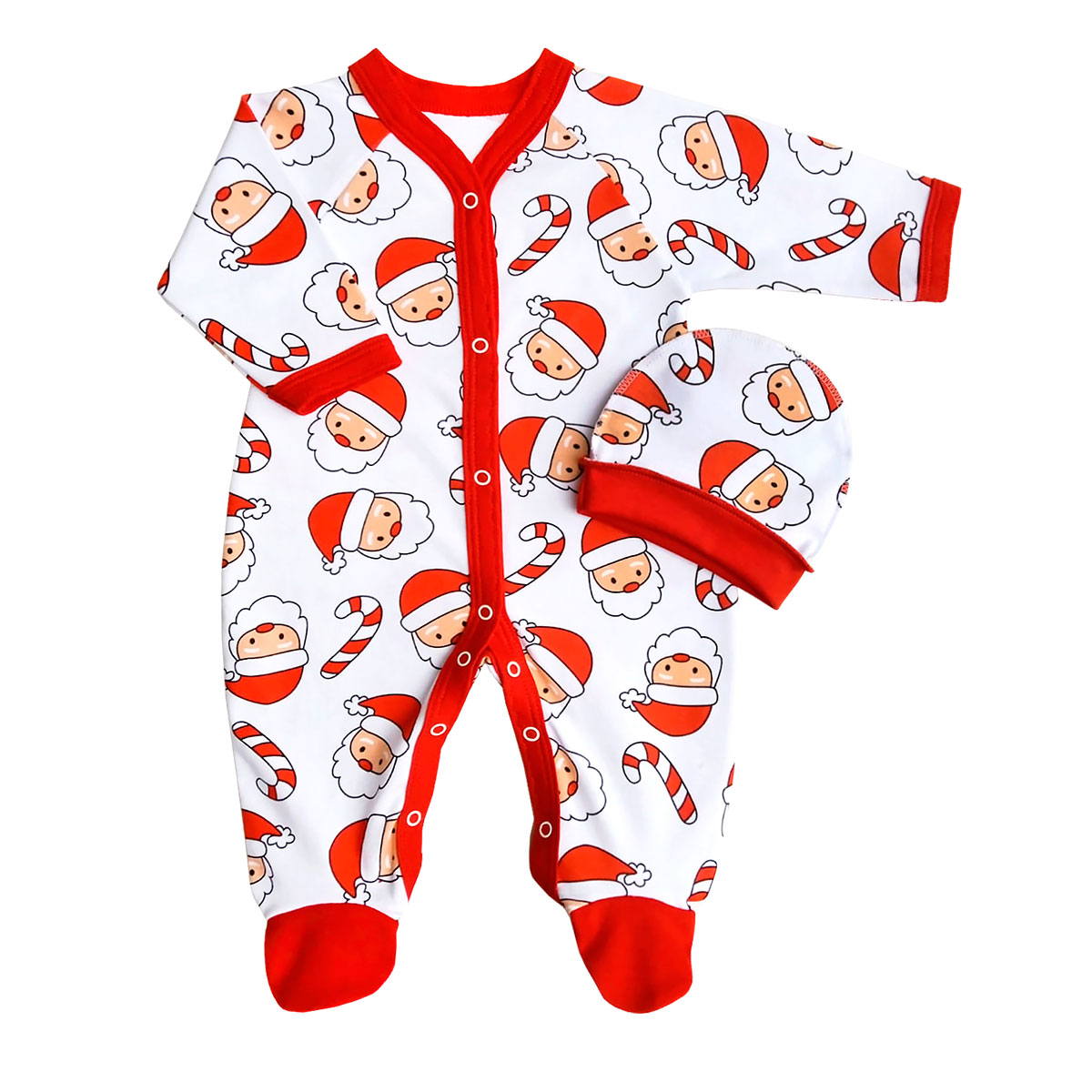 Комплект одежды для новорожденного, полностью распашной комбинезон с длинным рукавом и шапочка на рибане, выполнен из нежного трикотажного полотна средней плотности. Материал: - Интерлок пенье 100% хлопок Цвет в ассортименте. Упаковано в индивидуальный пакет.