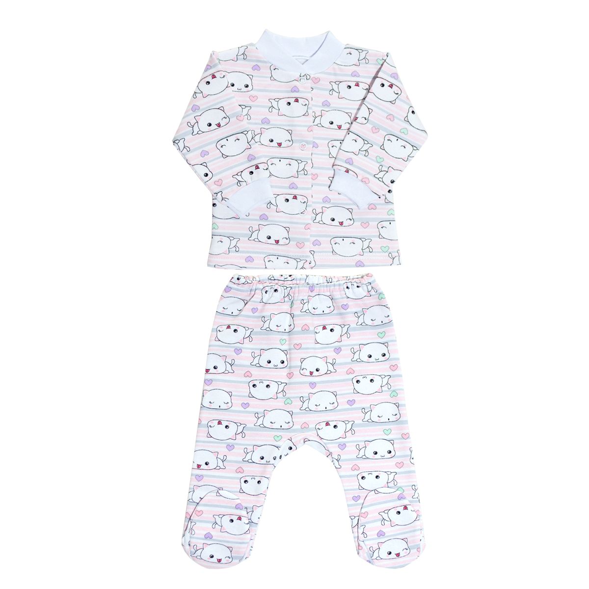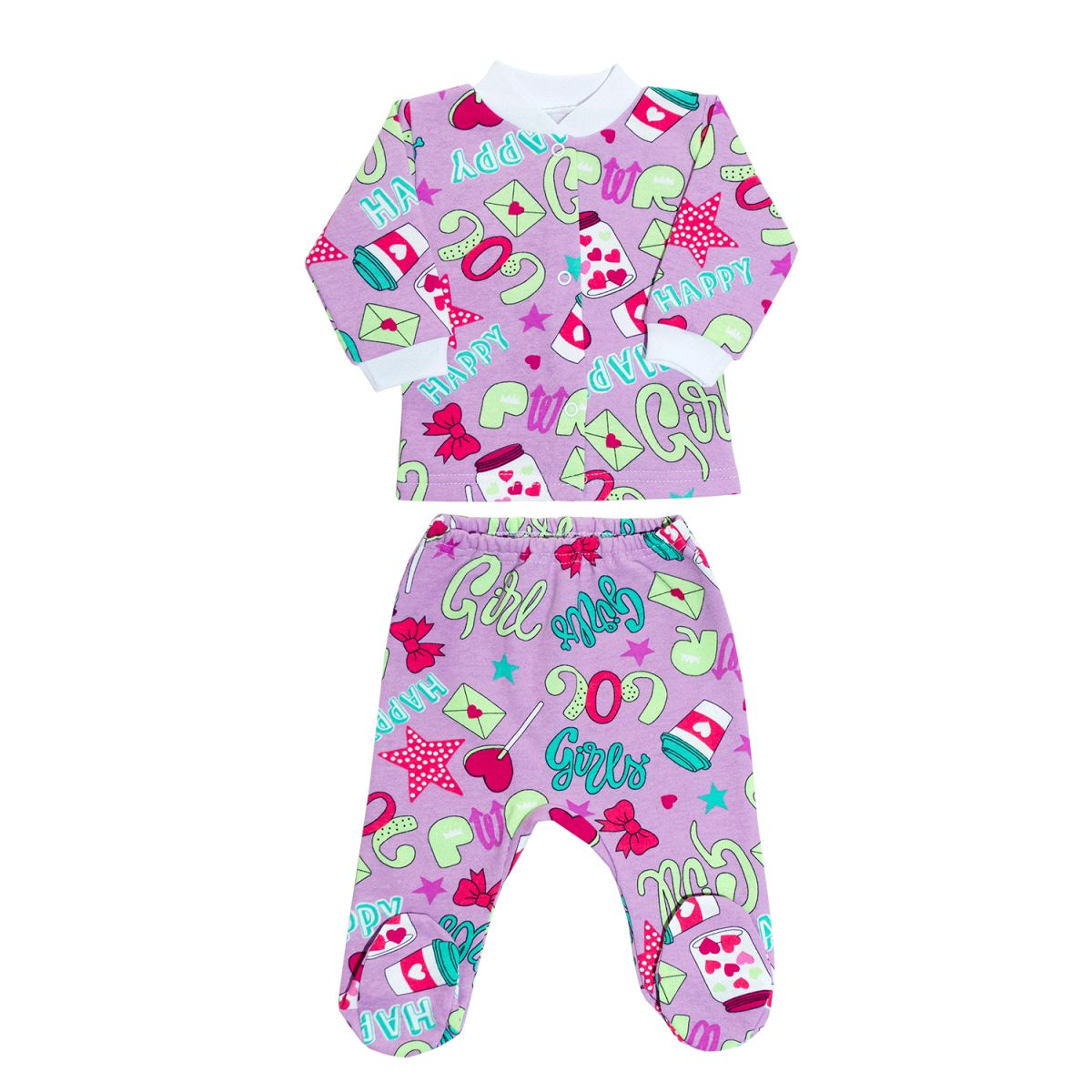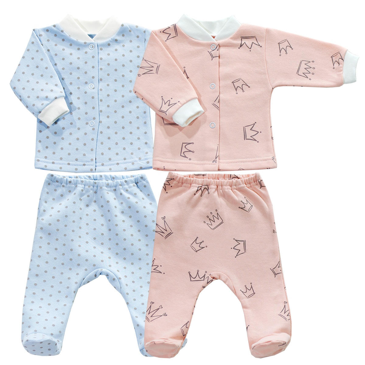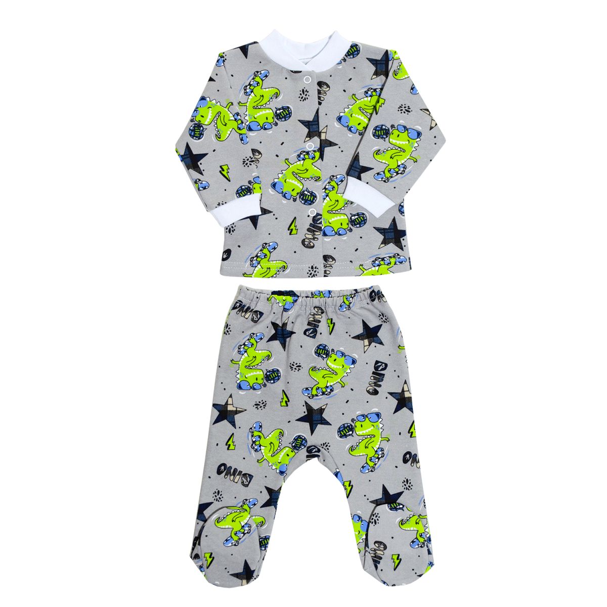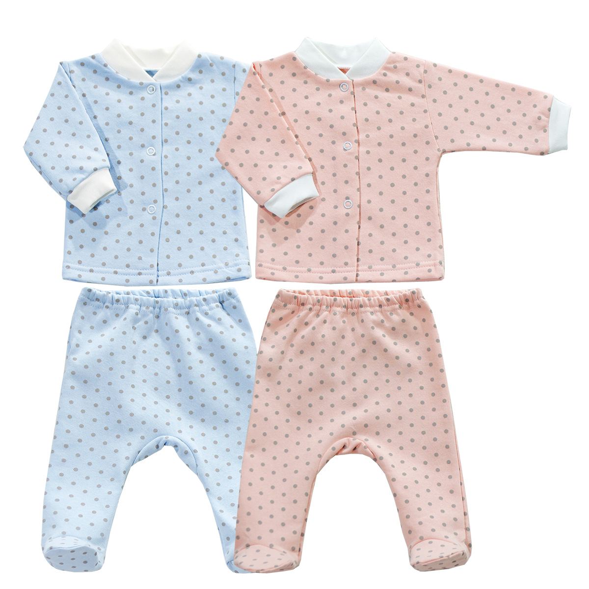 Комплект одежды для малыша 2-х предметный из плотного трикотажного полотна (с небольшим начесом) Комплект состоит из: - Кофточка на кнопках с длинным рукавом на манжете - Ползунки на резинке со следиком и ластовицей. Материал: - Футер 100% х/б.