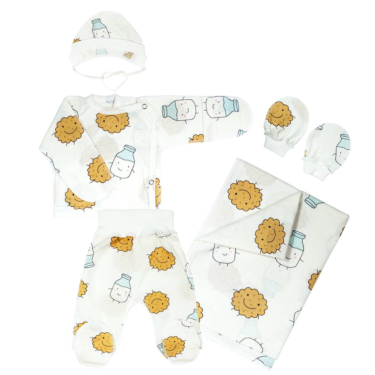 Комплект 5-ти предметный (пеленка, распашонка, ползунки, шапочка, рукавички)
