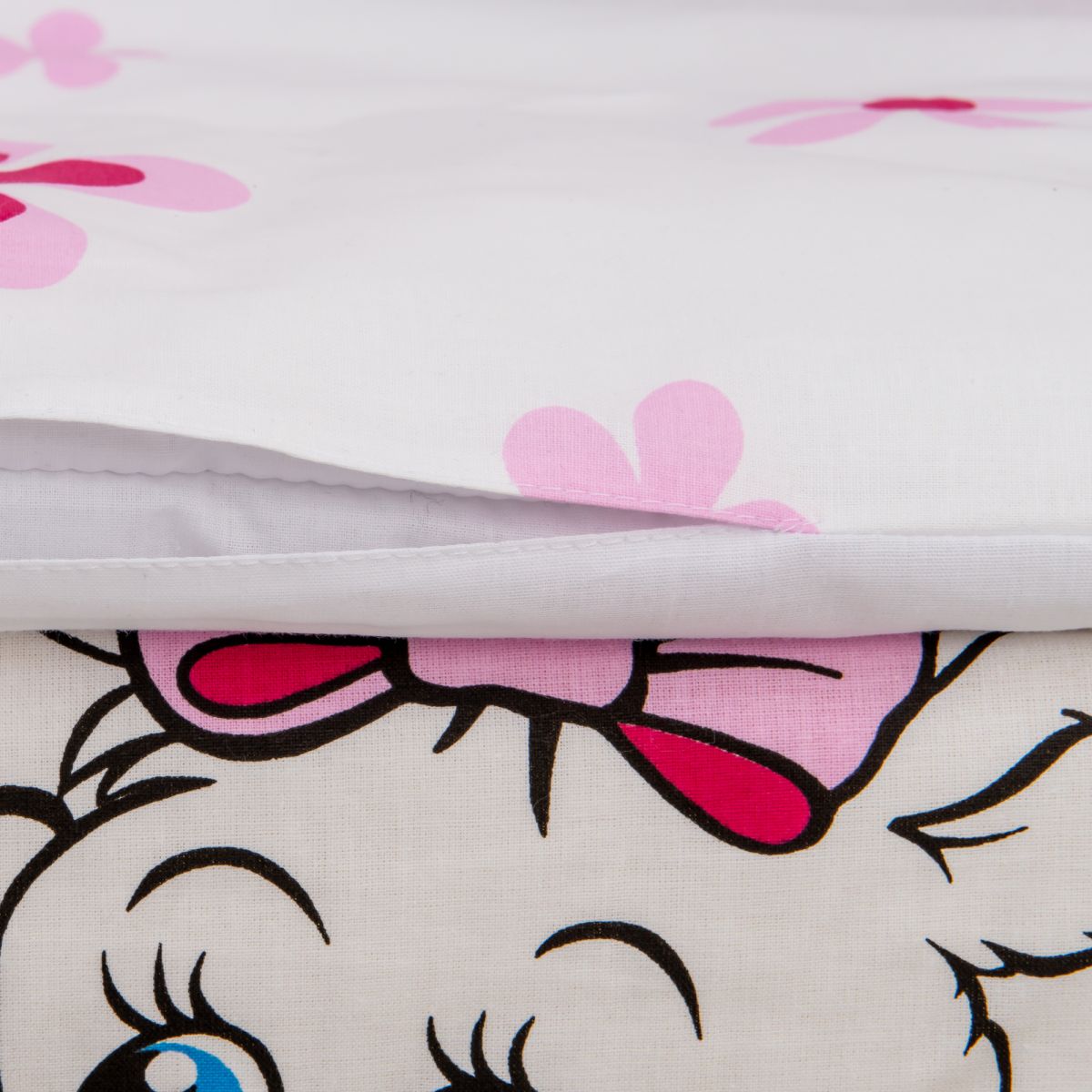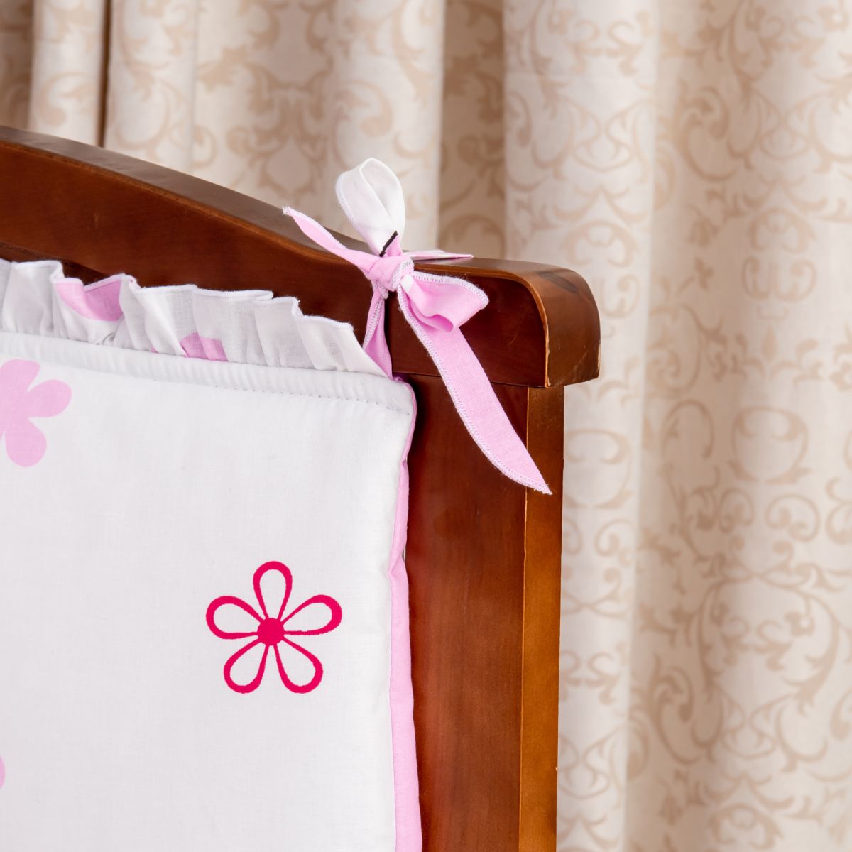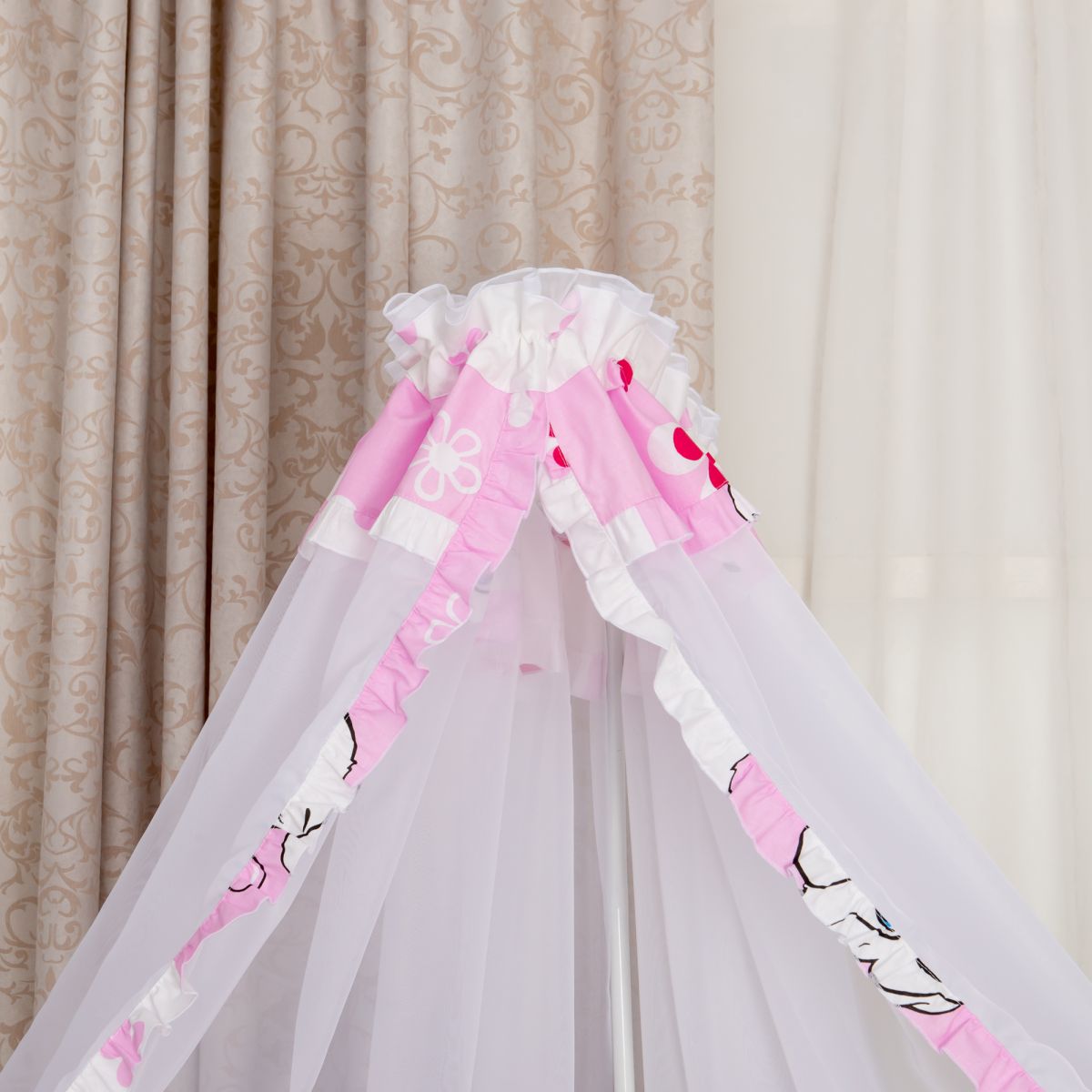 Комплект постельных принадлежностей для детской кроватки из 7-ти предметов (поплин): - бортик высокий, 4-х сторонний, изделие состоит из 4-х деталей, выполнено из поплина импортного производства с крупным рисунком, в качестве наполнителя используется синтепон. Высота изделия 50 см.; - балдахин изготовлен из вуали, изделие декорировано бязью импортного производства. Размер изделия 300*150 см. - одеяло прямоугольной формы, с наполнителем холлофайбер 400г/кв м. Размер 110*140см; - подушка прямоугольной формы, с наполнитель холлофайбер 800г/кв м. Размер 40*60см; - пододеяльник для прямоугольного одеяла, изготовлен из поплина. Размер 112*147см; - простыня прямая, изготовлена из поплина. Размер 95*147см; - наволочка для подушки прямоугольной формы, изготовлена из поплина. Размер 42*62см: Цвет в ассортименте. Комплект упакован в пакет. Примечание: Держатель для балдахина не входит в комплект. Набивной рисунок может отличаться от фото.