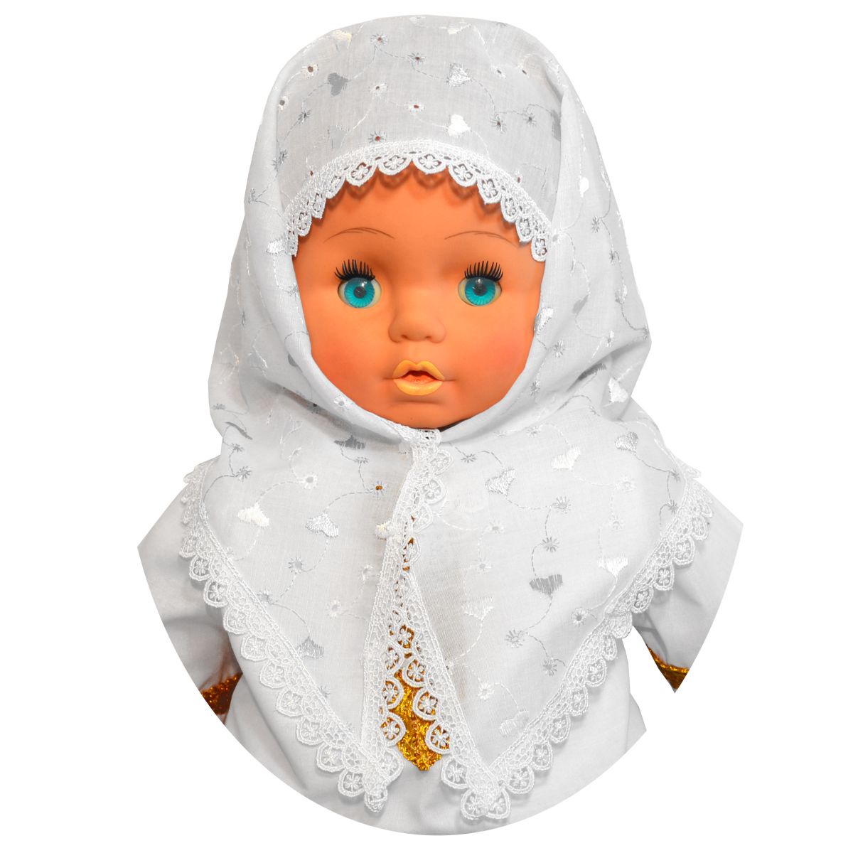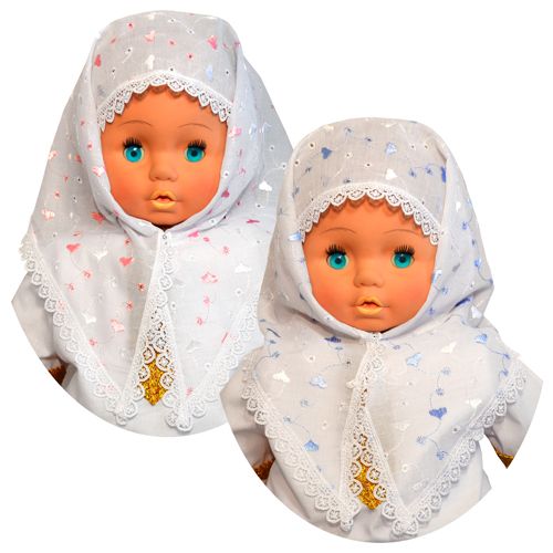 Косынка, изделие предназначено для проведения обряда крещения, ткань шитье-батист с отделкой кружевом. Изделие упаковано по 1 ед. в индивидуальный пакет.