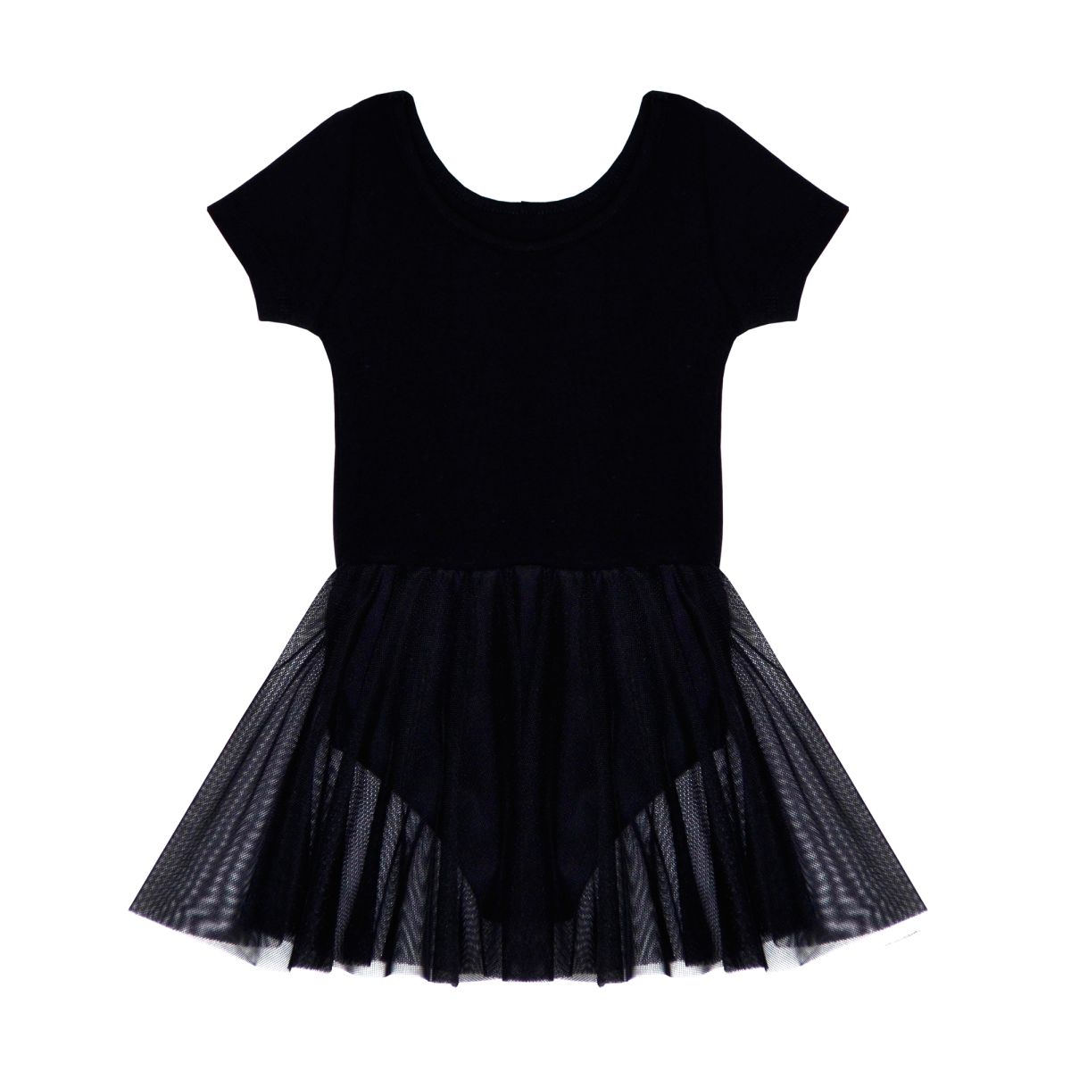 Купальник гимнастический черный, с коротким рукавом и юбочкой из мягкой сетки Материал: - 92% хлопок - 8% лайкра качества пенье