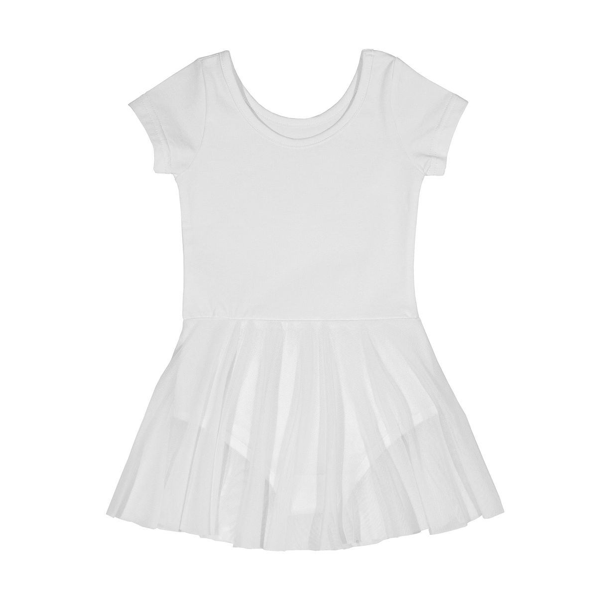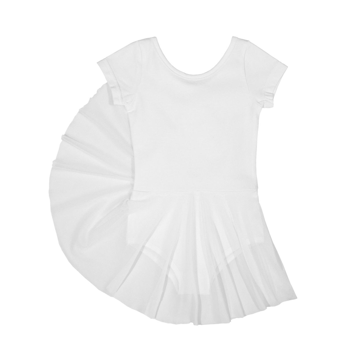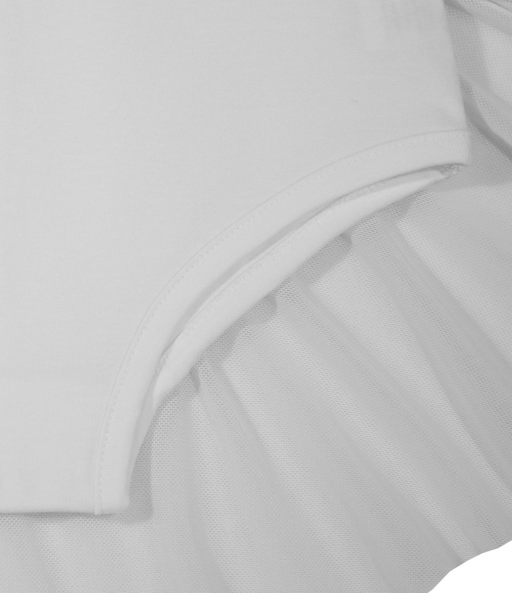 Купальник гимнастический белый с коротким рукавом и юбочкой из сетки 92% хлопок, 8% лайкра