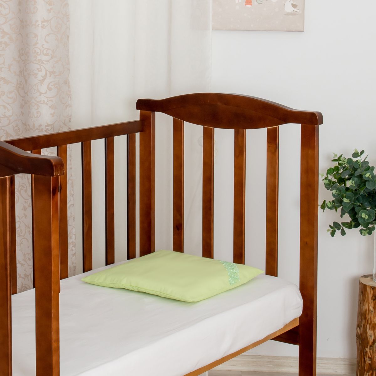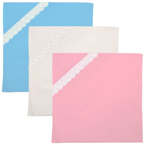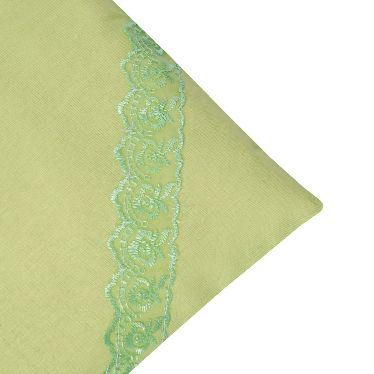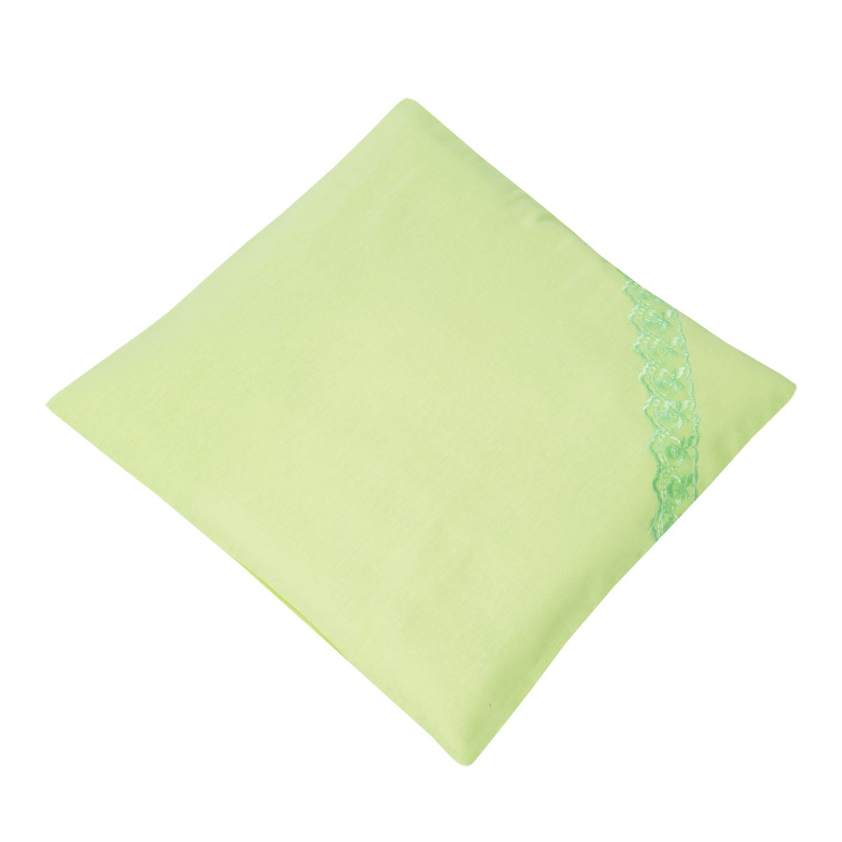 Наволочка для детской квадратной подушки 42*42см, изделие украшено кружевом по уголку (поплин однотон.). Цвет в ассортименте. Изделие упаковано по 1 ед. в индивидуальный пакет.