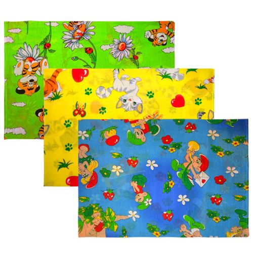 Наволочка для детской прямоугольной подушки, изготовлена из бязи с рисунком отечественного производства. Размер 42*62см. Изделие упаковано по 1 ед. в индивидуальный пакет. Набивной рисунок может отличаться от фото.