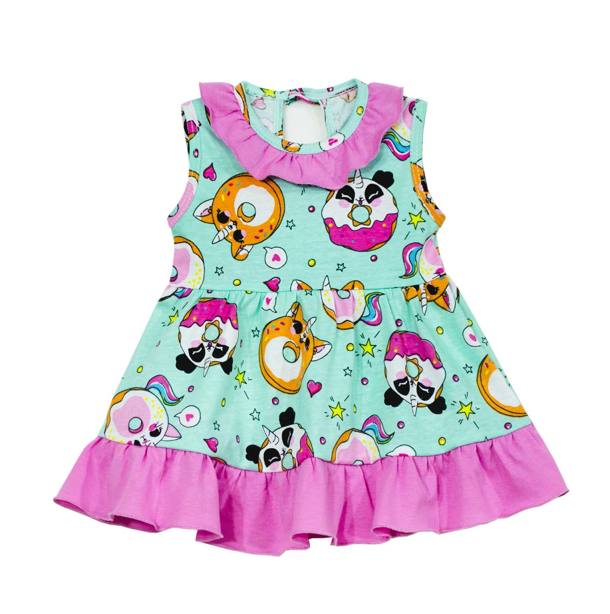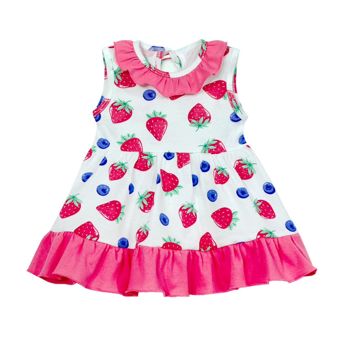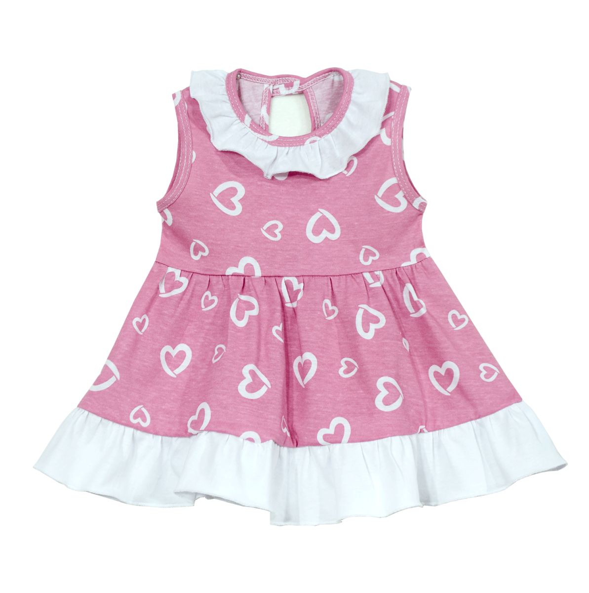 Платье на завязках сзади, украшено рюшей по горловине, выполнено из легкого трикотажного полотна. Упаковано по 1 ед. в индивидуальный пакет.