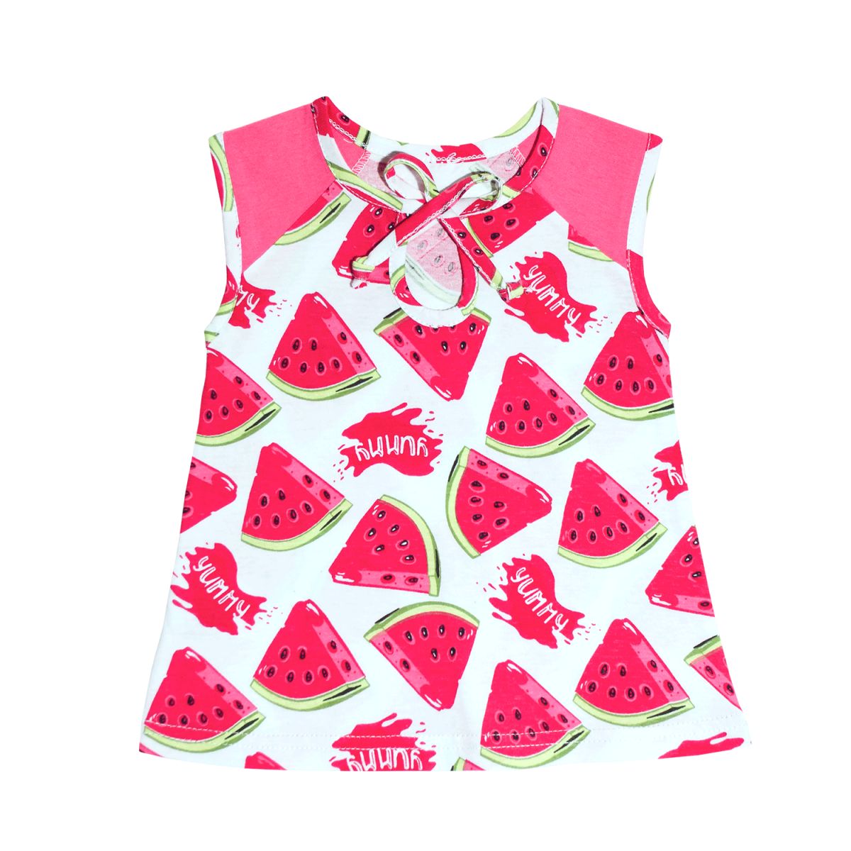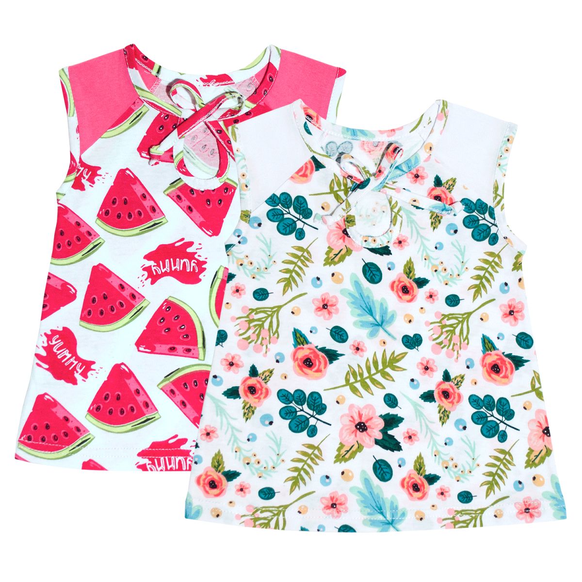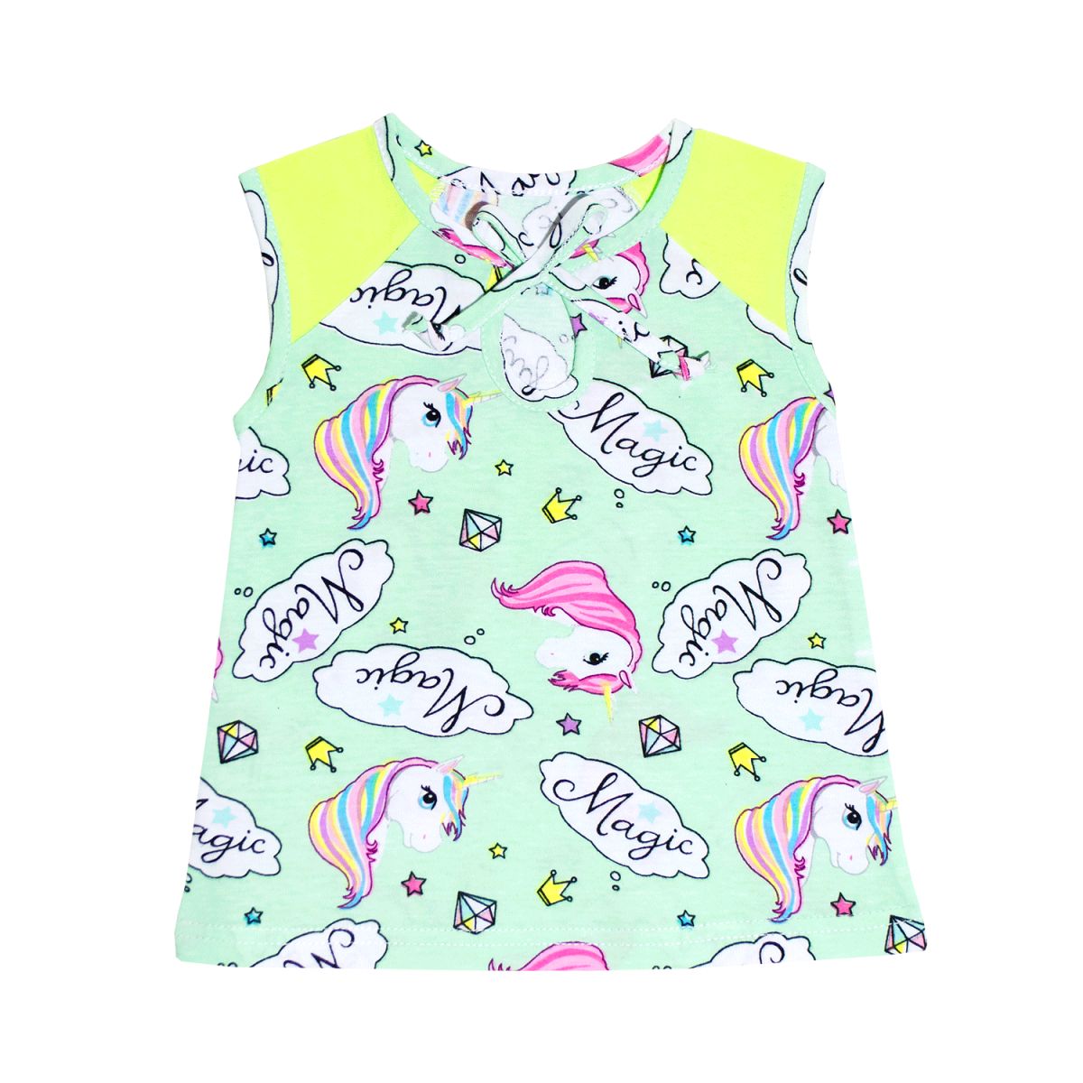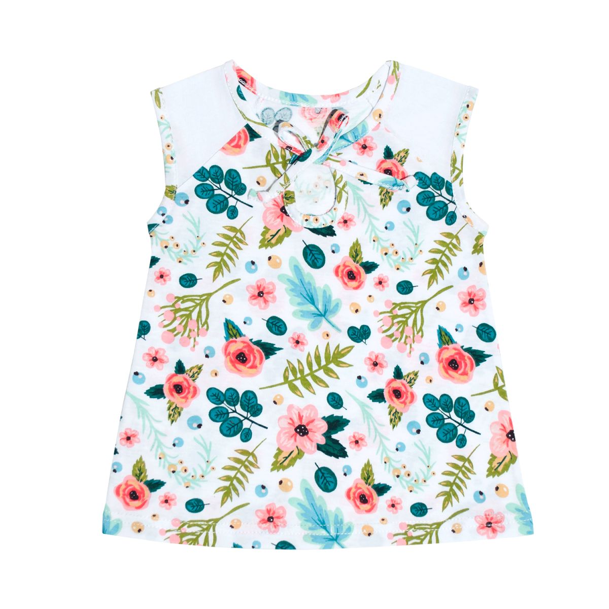 Платье для девочки возрастом от 1 месяца до 2лет. Платье без рукавов. Впереди на завязках, выполнено из легкого трикотажного полотна 100% хлопок. Цвет в ассортименте. Упаковано по 1 ед. в индивидуальный пакет.