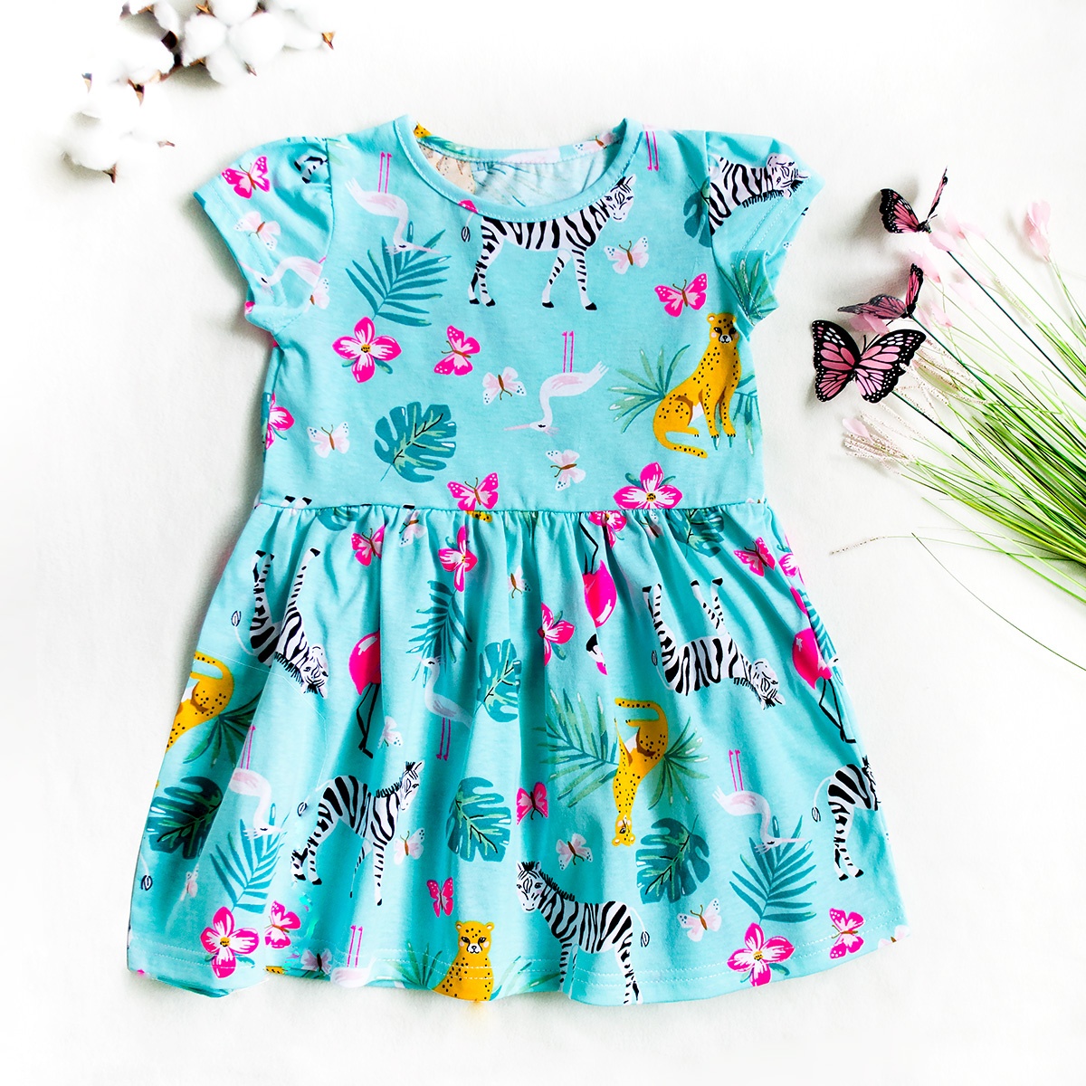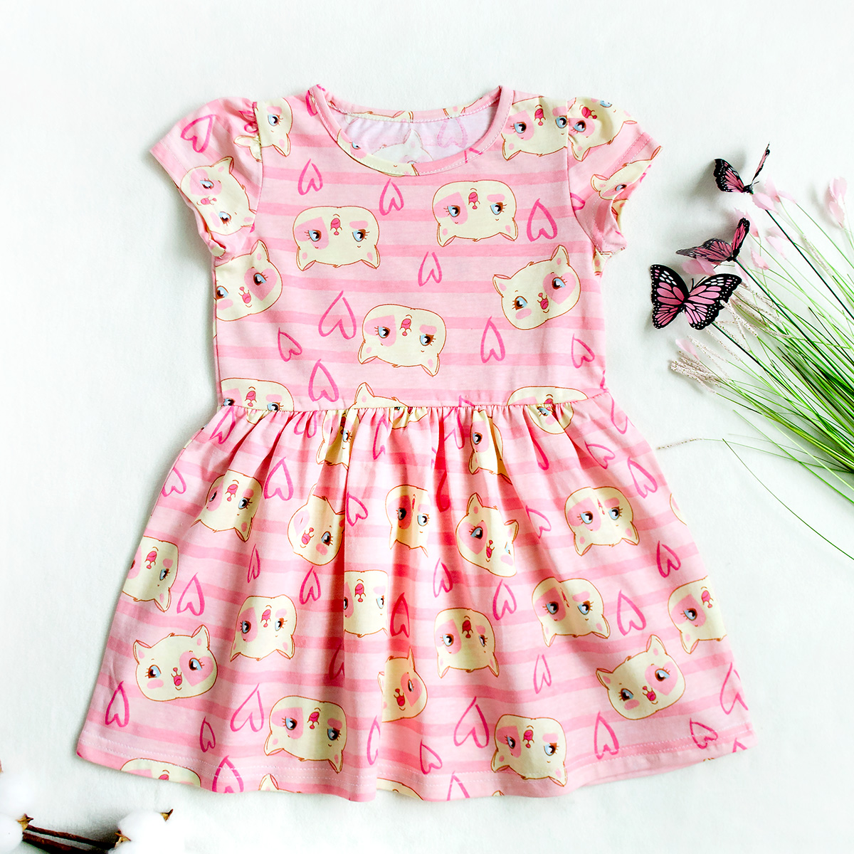Платье для девочки возрастом от 2 до 9 лет. Модель с коротким втачным рукавом. Изделие выполнено из легкого трикотажного полотна. Легкое дышащее платье для лета или для теплого помещения. Идеальный недорогой вариант платья для девочки в садик. Материал: - Хлопок 100% Расцветки в ассортименте Упаковано по 1 ед в индивидуальный пакет