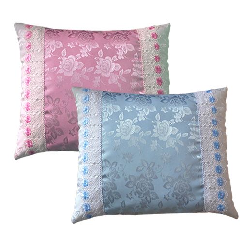 Подушка нарядная, украшена красивым кружевом с двух сторон, изготовлена из жаккардового атласа, наполнитель холлофайбер 800г/кв м. Размер: 30*40см. Цвет в ассортименте. Изделие упаковано по 1 ед. в индивидуальный пакет.