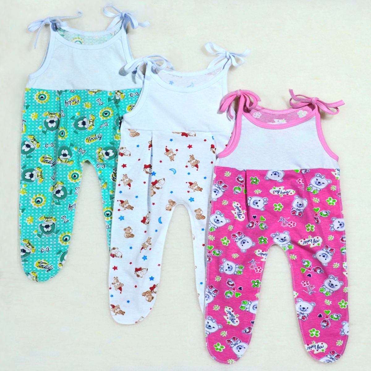 Ползунки на завязках, с закрытой грудкой, швы наружу, следики на защипах, без ластовицы, выполнены из легкого трикотажного полотна. Расцветки в ассортименте. Упакованы по 1 ед. в индивидуальный пакет.