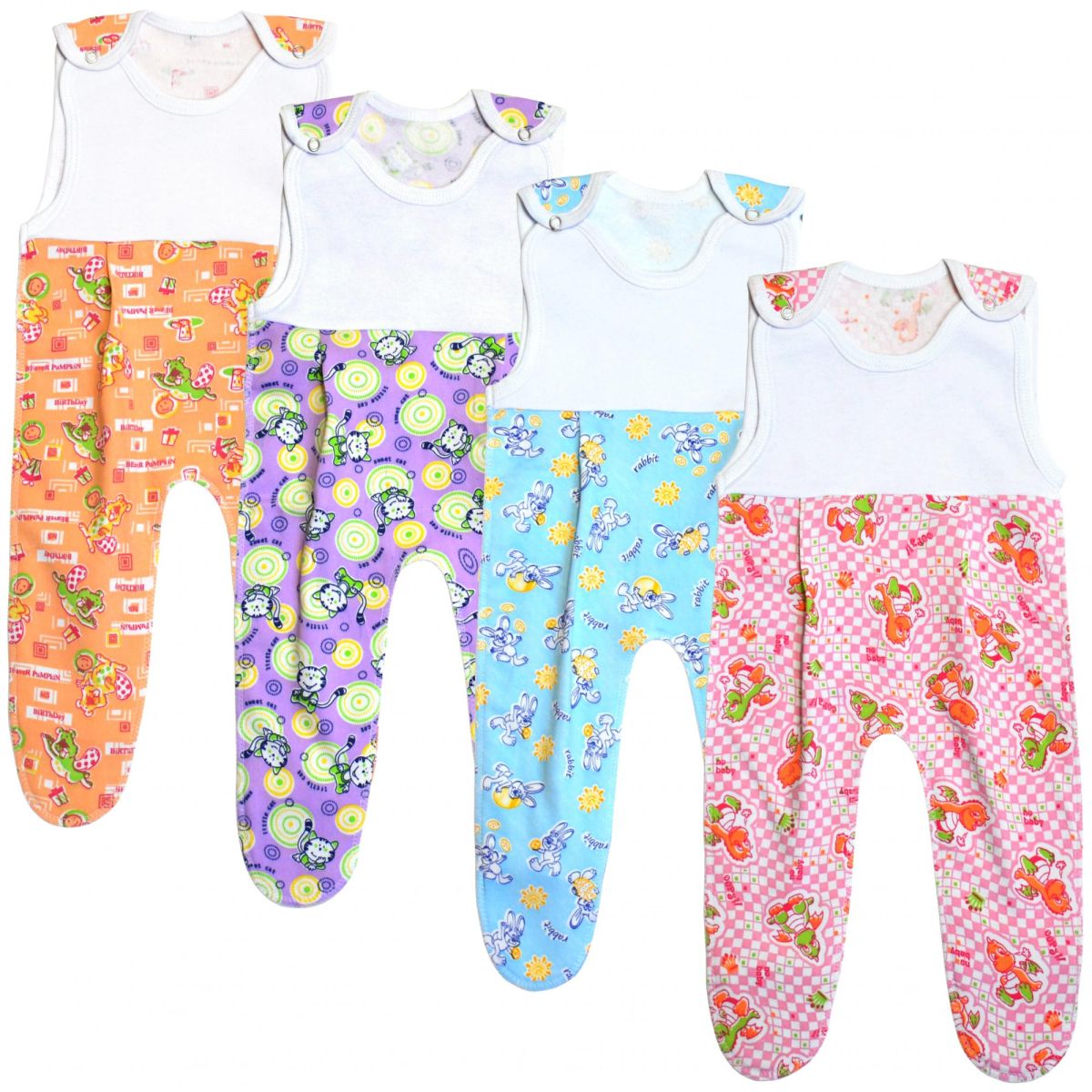 Ползунки на лямках с кнопками, с закрытой грудкой, швы наружу, следики на защипах, без ластовицы, выполнены из теплого трикотажного полотна. Расцветки в ассортименте. Упакованы по 1 ед. в индивидуальный пакет.