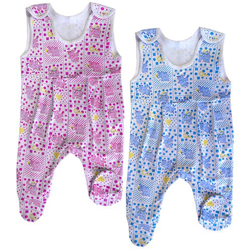 Ползунки на лямках с кнопками, с закрытой грудкой, со следиком и ластовицей, выполнены из теплого трикотажного полотна. Расцветки в ассортименте. Упакованы по 1 ед. в индивидуальный пакет.