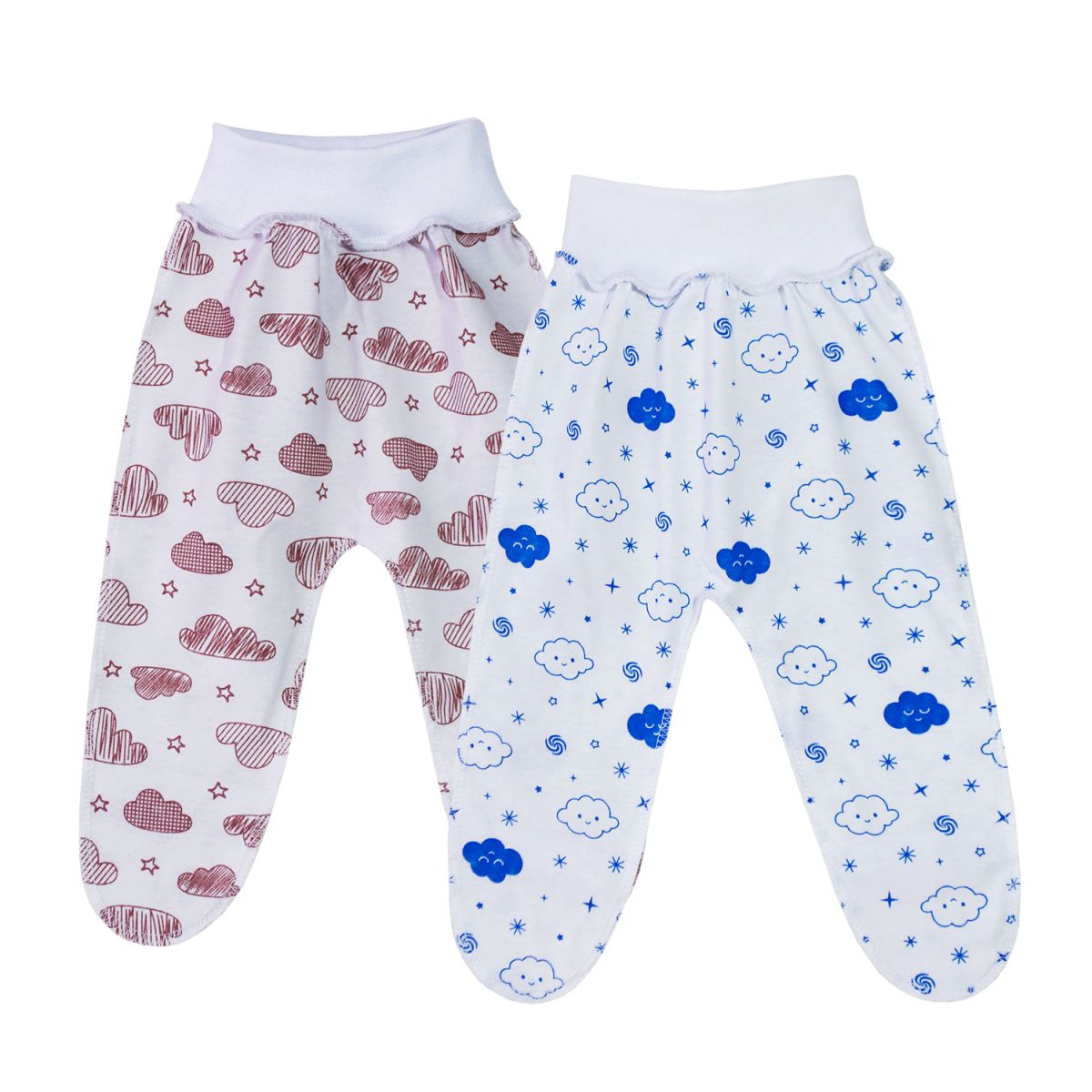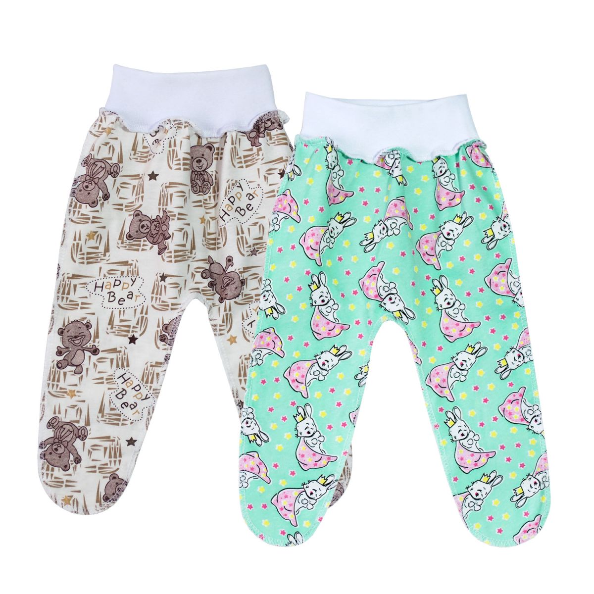 Ползунки на рибане, швы наружу, без следика, пяточка на защипе, выполнены из легкого трикотажного полотна. Расцветки в ассортименте. Упакованы по 1 ед. в индивидуальный пакет.