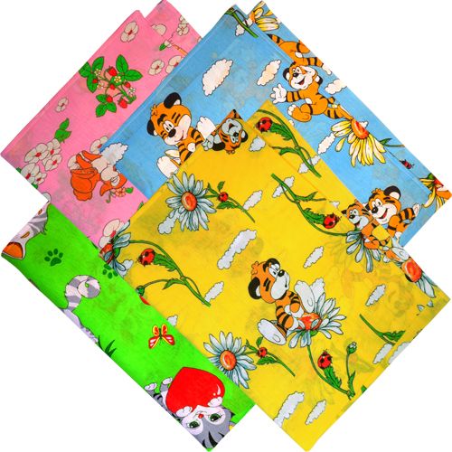 Простыня для детской кроватки, изготовлена из бязи с рисунком отечественного производства. Размер 95*147 см. Цвет в ассортименте.