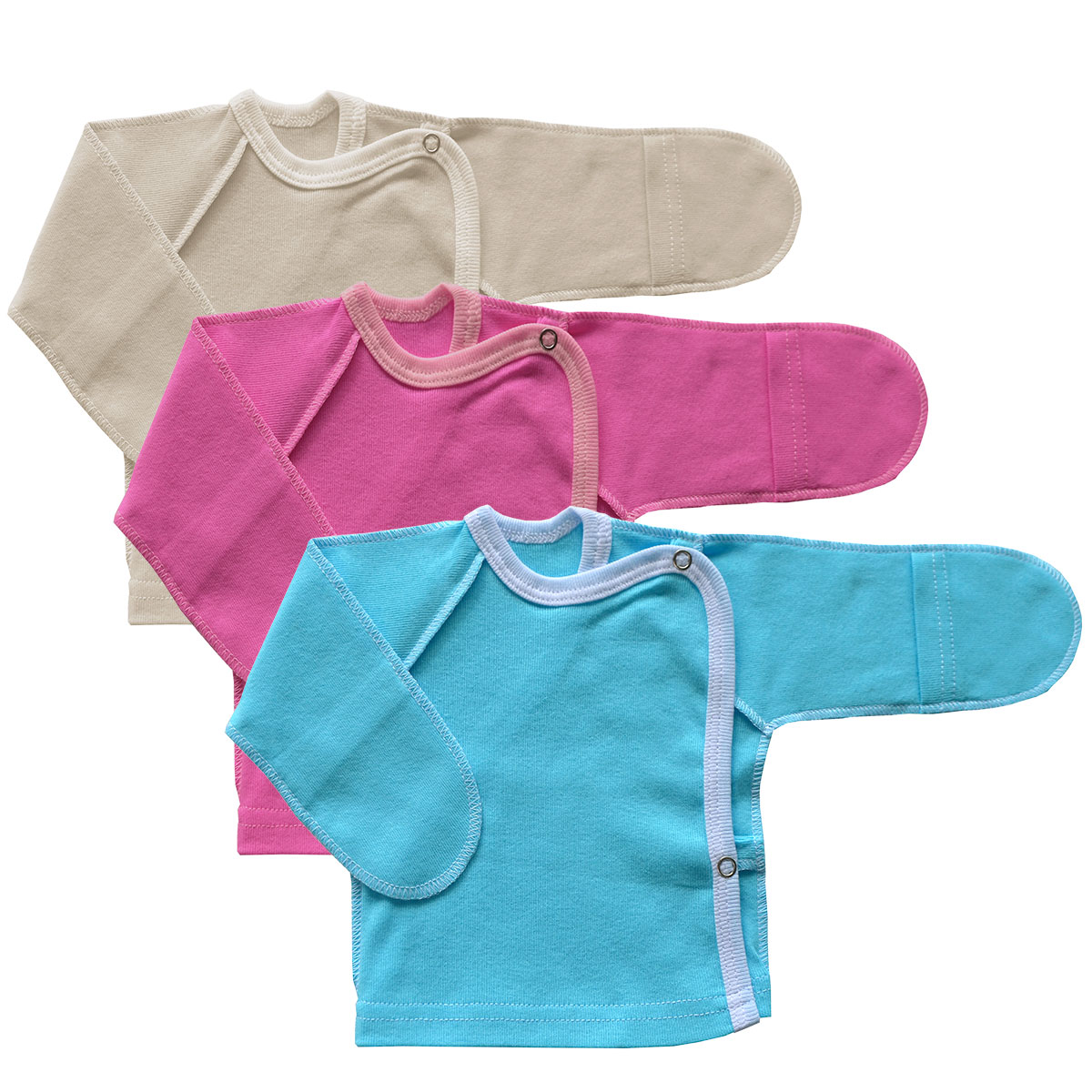 Распашонка с универсальным рукавом, сбоку с двух сторон кнопки и кнопка на плече, выполнена из трикотажного полотна. Расцветка в ассортименте. Упаковка - индивидуальный пакет.