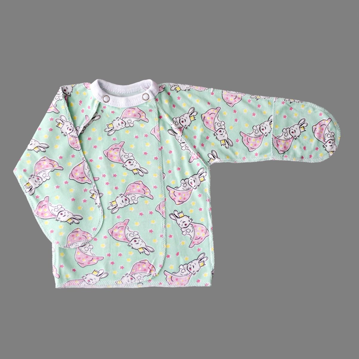 Распашонка швы наружу - Универсальный рукав реглан - Запах на 2 кнопках - Окантовка (ворот). Есть малый размер для недоношенных новорожденных деток (50-32)