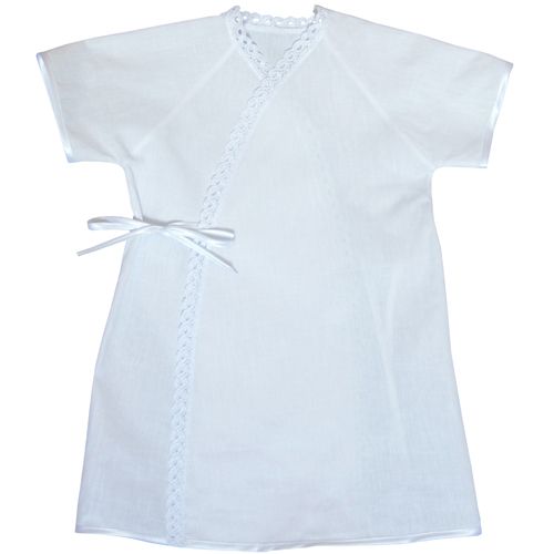 Рубашка на запах, предназначена для проведения обряда крещения, выполнена из бязи гладкокрашеной, края запаха и ворот, по краю украшены кружевом. Изделие упаковано по 1 ед. в индивидуальный пакет.Упаковано по 1 ед. в индивидуальный пакет.