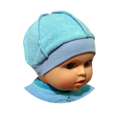 Шапочка для новорожденного на рибане из шести клиньев, выполнена из махрового трикотажного полотна.