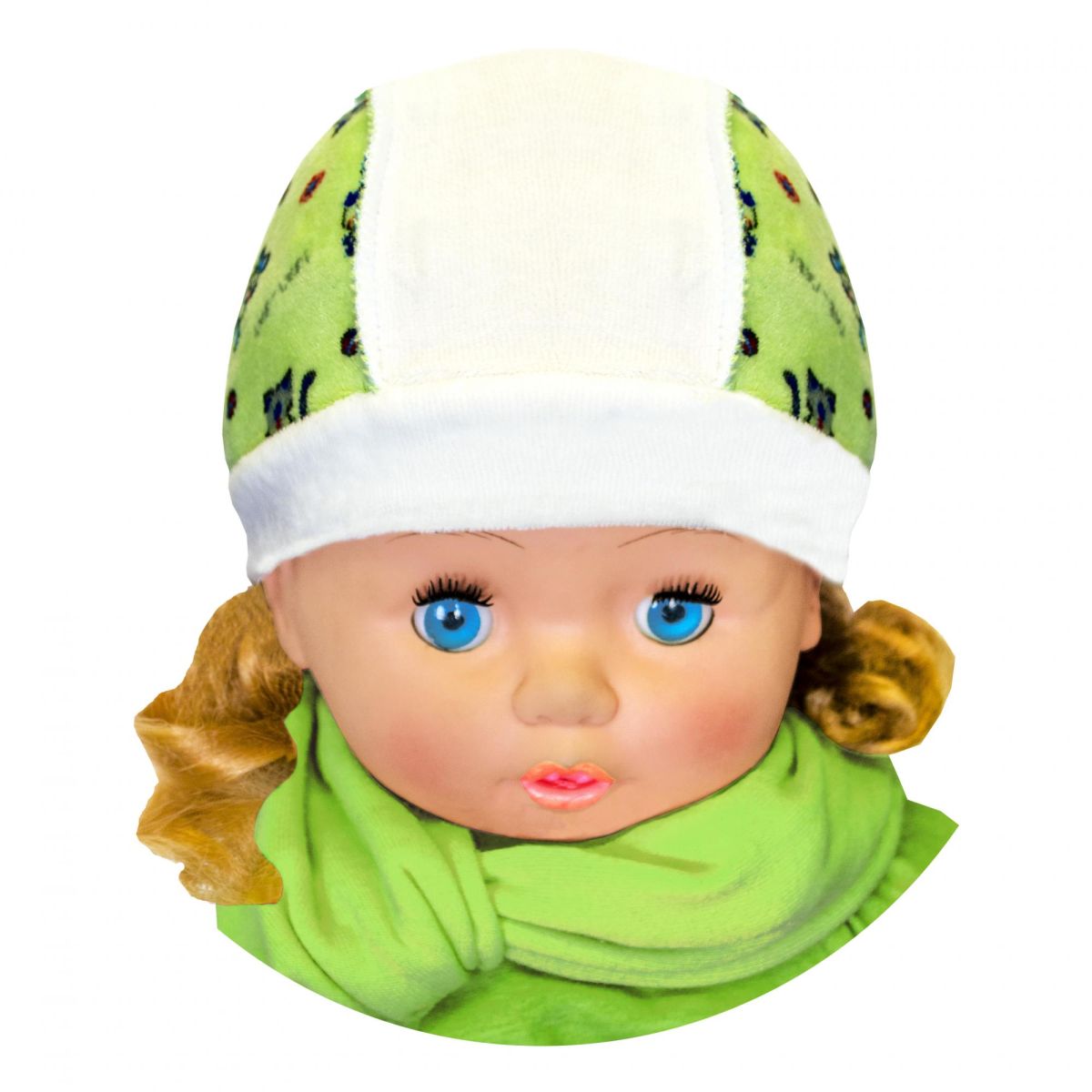Шапочка для новорожденного на рибане с боковыми вставками, выполнена из велюрового трикотажного полотна.