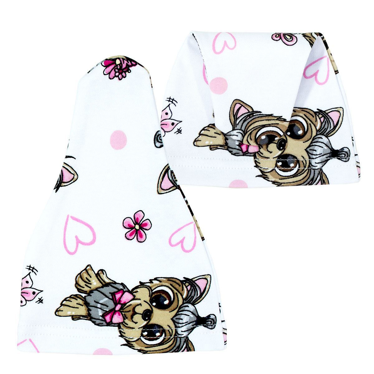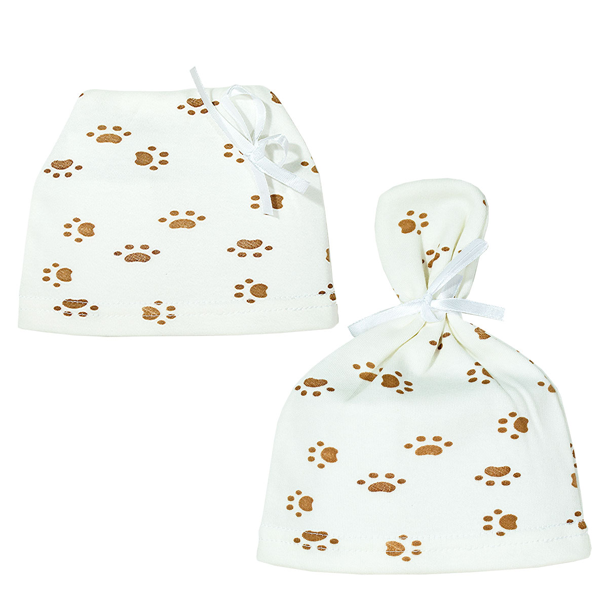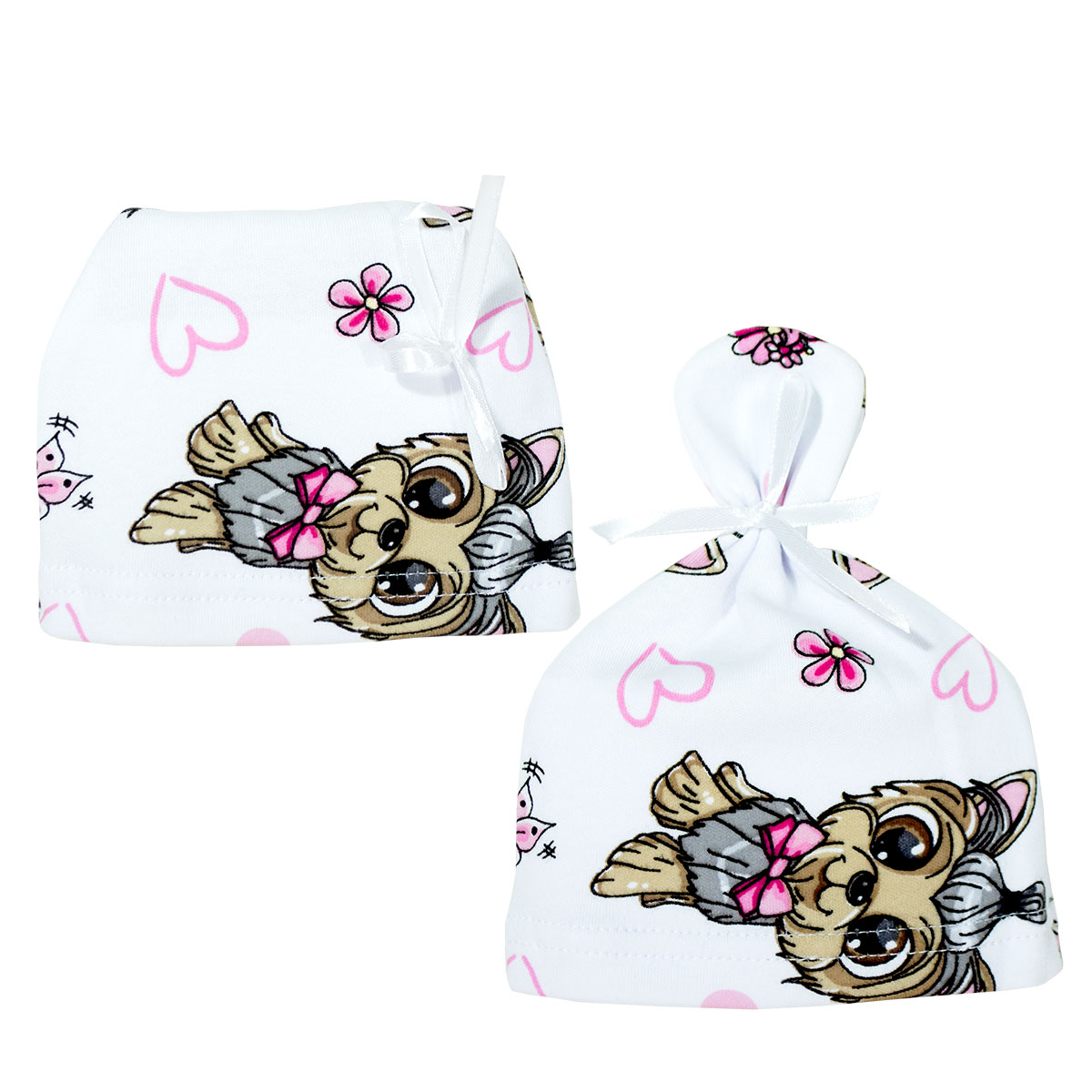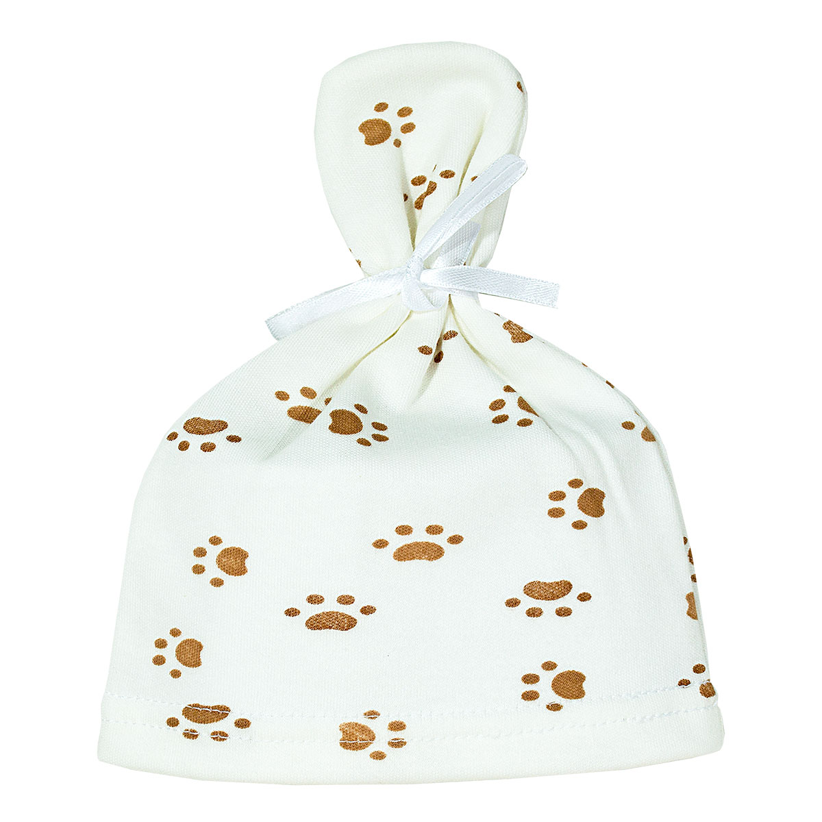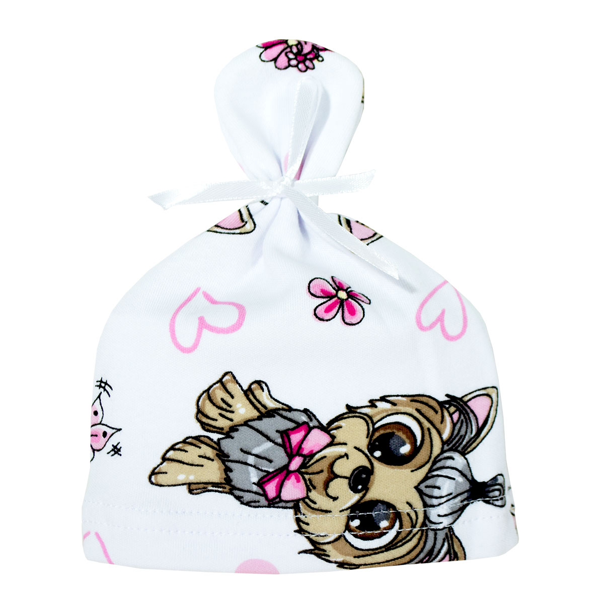 Шапочка на подгибе, для новорожденного, украшена аппликацией, выполнена из нежного трикотажного полотна средней плотности.