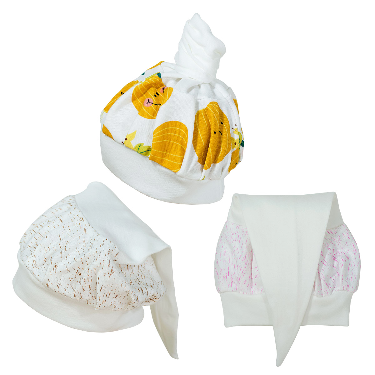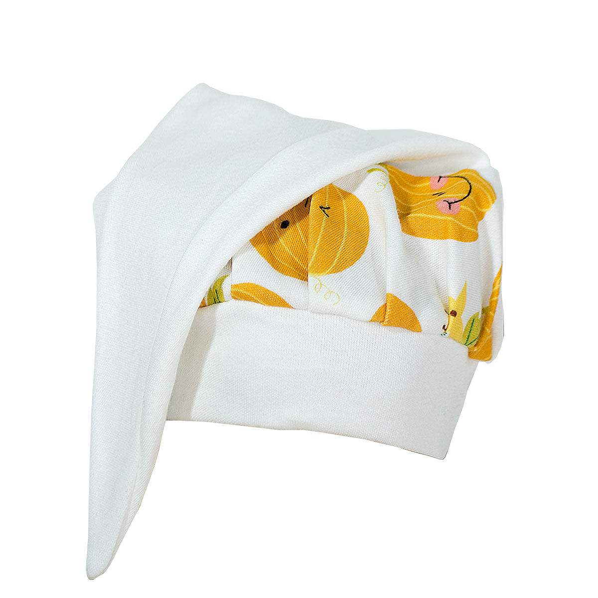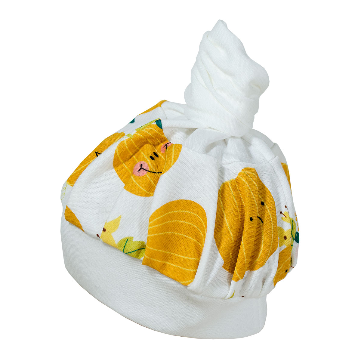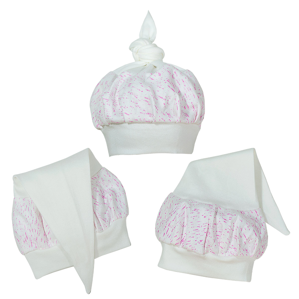 Шапочка с узелком, для новорожденного, выполнена из нежного трикотажного полотна средней плотности. Цвета в ассортименте. Упаковано в индивидуальный пакет.
