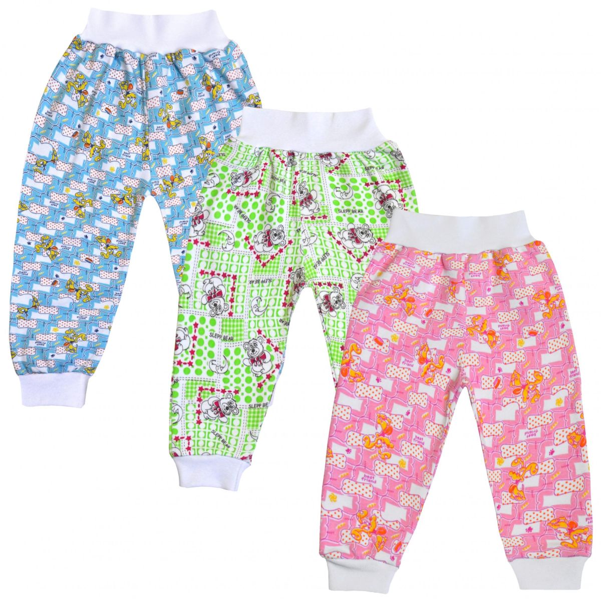 Штанишки на рибане, на манжетах, выполнены из трикотажного полотна средней плотности. Упакованы по 1 ед. в индивидуальный пакет.