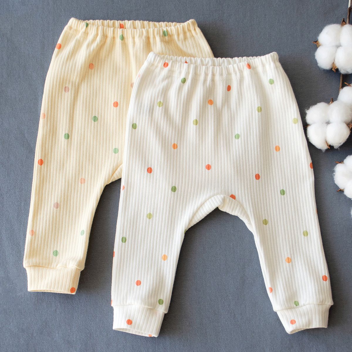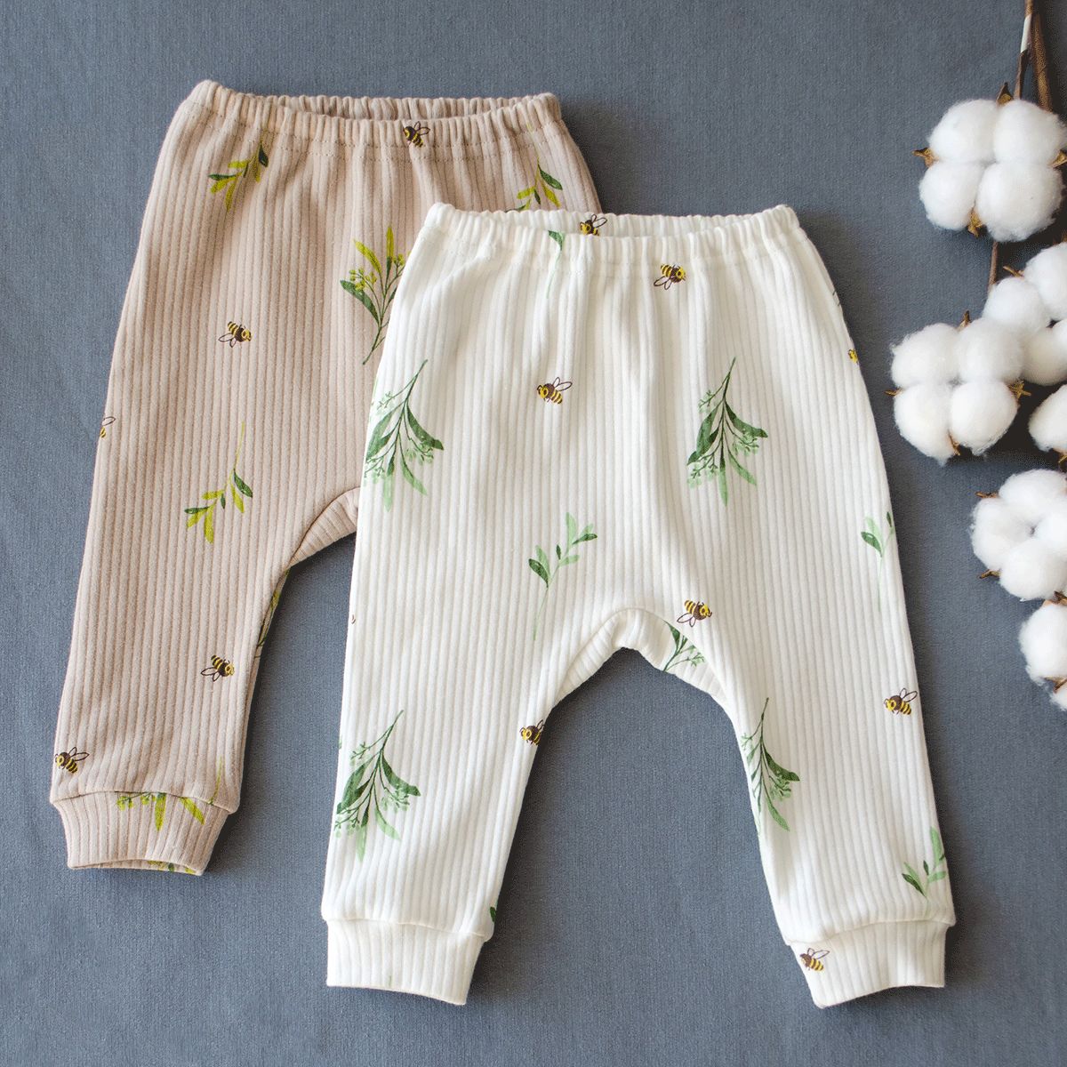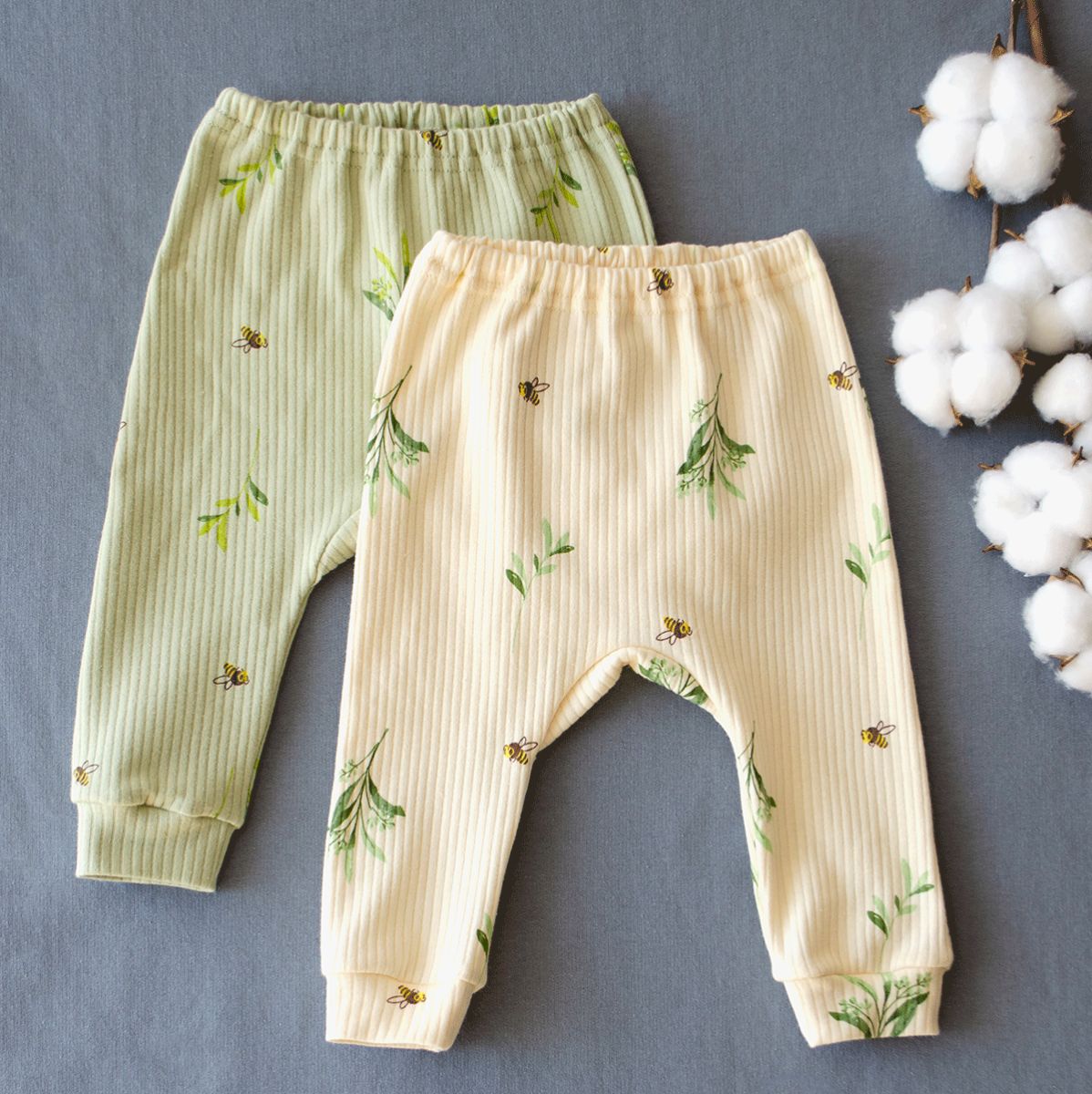 Штанишки для новорожденного малыша. Модель на резине, ластовица, низ на манжетах. Выполнены из нежного трикотажного полотна средней плотности.