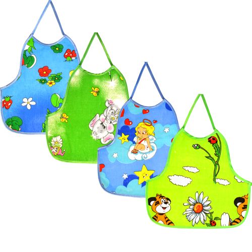 Слюнявчик фартук, выполнен из бязи набивной. Цвет в ассортименте. Упаковано по 1 ед. в индивидуальный пакет.
