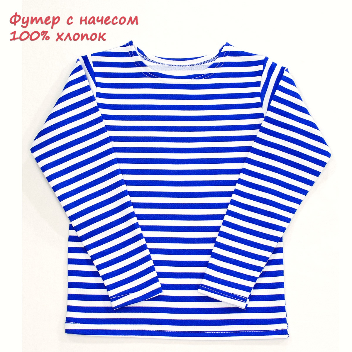 Тельняшка утепленная, для детей возрастом от 6 до 15 лет. Лонгслив тельняшка с длинным рукавом. Материал изготовления футер с начесом - 100% хлопок